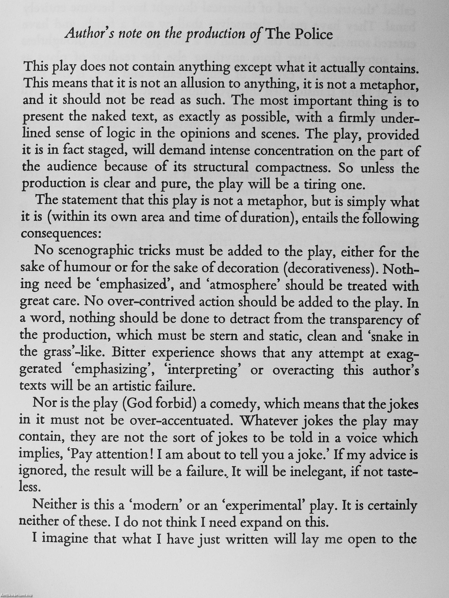 At 37, the leading playwright of modern Poland, Slawomir Mrozek recently emerged as one of Europe's major new dramatists with the international success of his full-length play Tango in its London, Paris, Düsseldorf, and Warsaw productions. In the one-act plays collected in this volume, as in all of Mrozek's work, perfect logic is rigorously applied to illogical ends: in Police, the last jailed revolutionary threatens to reform, thus making the police obsolete; in Out at Sea, three shipwrecked survivors must decide which one of them will be eaten by the other two; two bureaucrats sharing a hotel room in Enchanted Night conjure up a "dream girl" with their mutual imagination; three bored farm hands in Party initiate a desperate cycle of merry-making that threatens to end in murder; in Charlie, an occulist is asked to fit an old man with glasses to help him shoot the man he wants to murder; and in The Martyrdom of Peter Ohey a maharajah and an imaginary tiger hunt down an innocent citizen in his bathroom. Here again, Mrozek shows himself to be an undisputed master of the grotesque, a sharp parodist of politics.