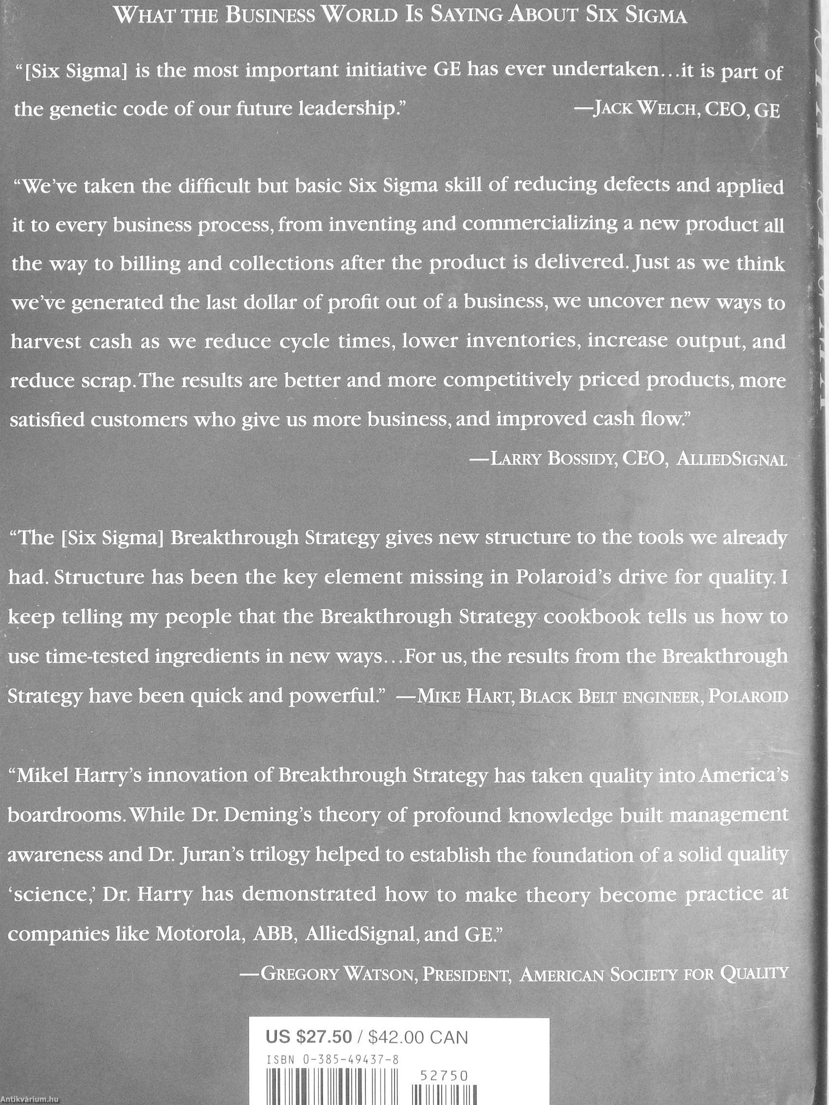 "Mikel Harry's irmovation of Breakthrough Strategy has taken quality into America's boardrooms. While Dr. Deming's theory of profound knowledge built management awareness and Dr. Juran's trilogy helped to establish the foundation of a solid quality 'science,' Dr. Harry has demonstrated how to make theory become practice at companies like Motorola, ABB, AlliedSignal, and GE."