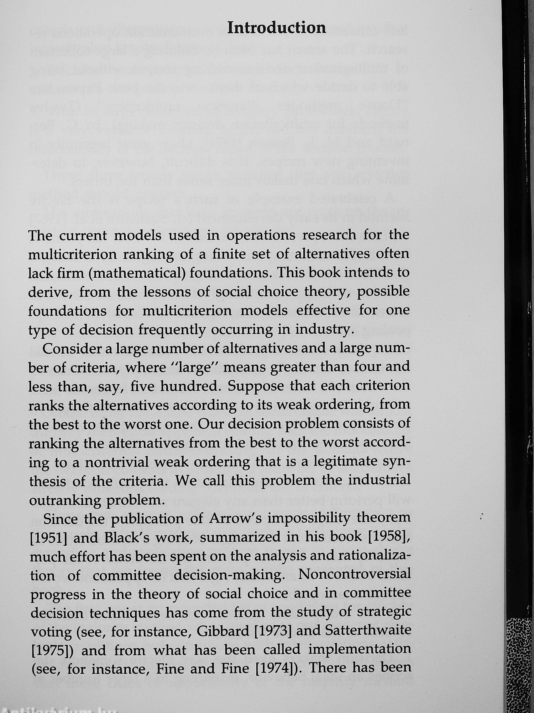 imposition of personal values. They then develop o system of consistent and appealing axioms, confront the paradoxes that put axiomatic systems in general at risk, and demonstrate the applicability of their system to realistic industrial outranking problems.