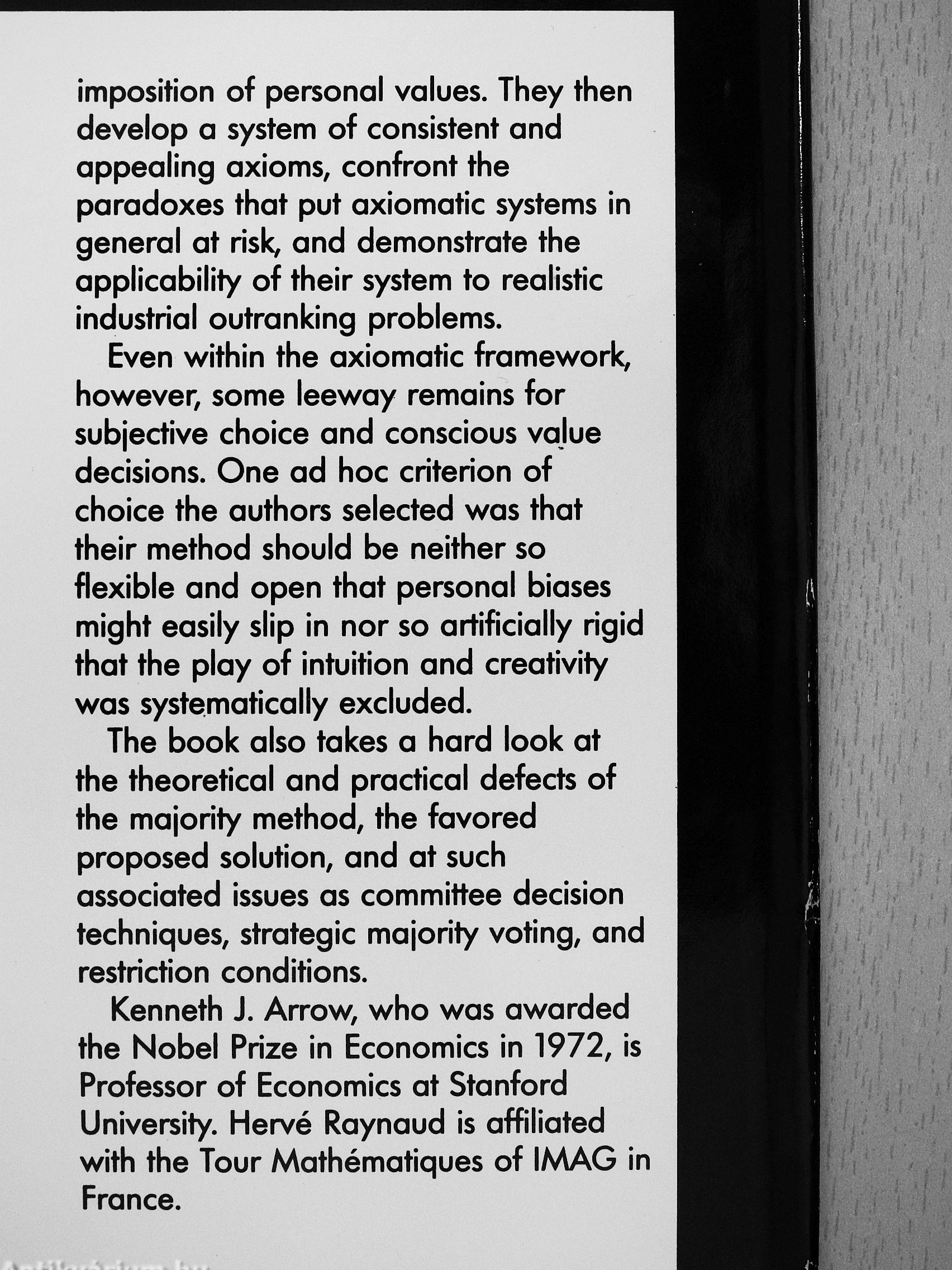 Kenneth J. Arrow, who was awarded the Nobel Prize in Economics in 1972, is Professor of Economics at Stanford University. Hervé Raynaud is affiliated with the Tour Mathématiques of IMAG in France.