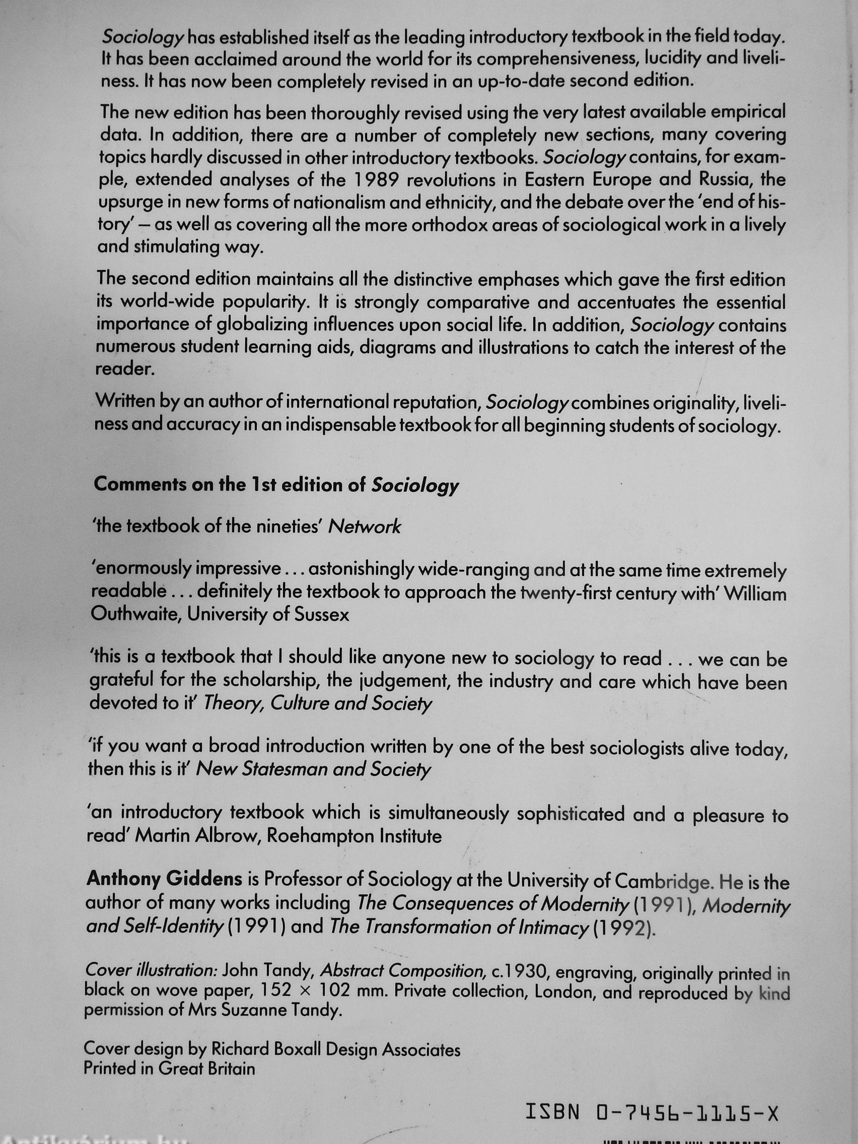 Sociology has established itself as the leading introductory textbook in the field today. It has been acclaimed around the world for its comprehensiveness, lucidity and liveliness. It has now been completely revised in an up-to-date second edition.