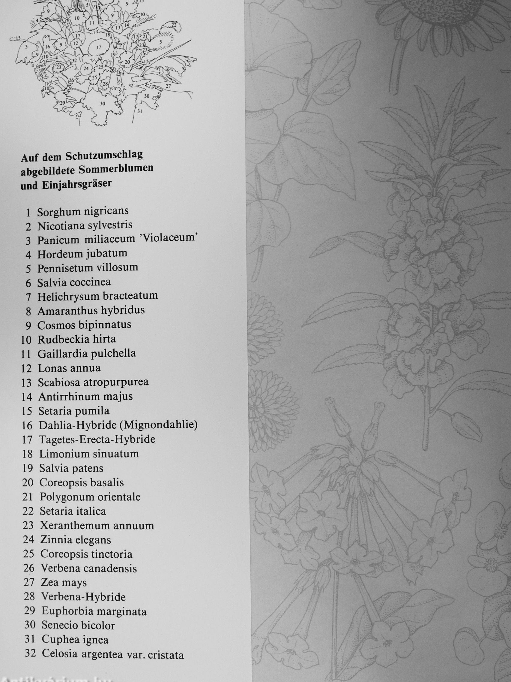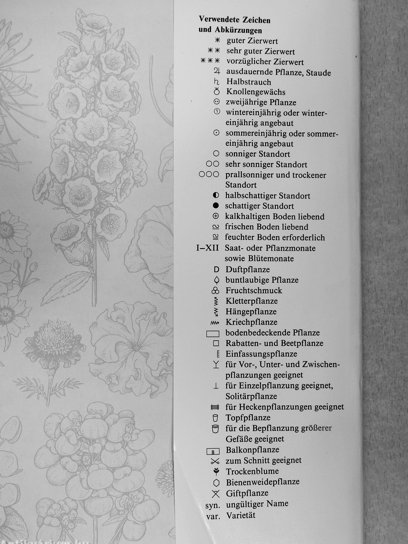 Verwendete Zeichen und Abkürzungen * guter Zierwert sehr guter Zierwert vorzüglicher Zierwert ausdauernde Pflanze, Staude Halbstrauch Knollengewächs zweijährige Pflanze wintereinjährig oder wintereinjährig angebaut sommereinjährig oder sommereinjährig angebaut sonniger Standort sehr sonniger Standort prallsonniger und trockener Standort