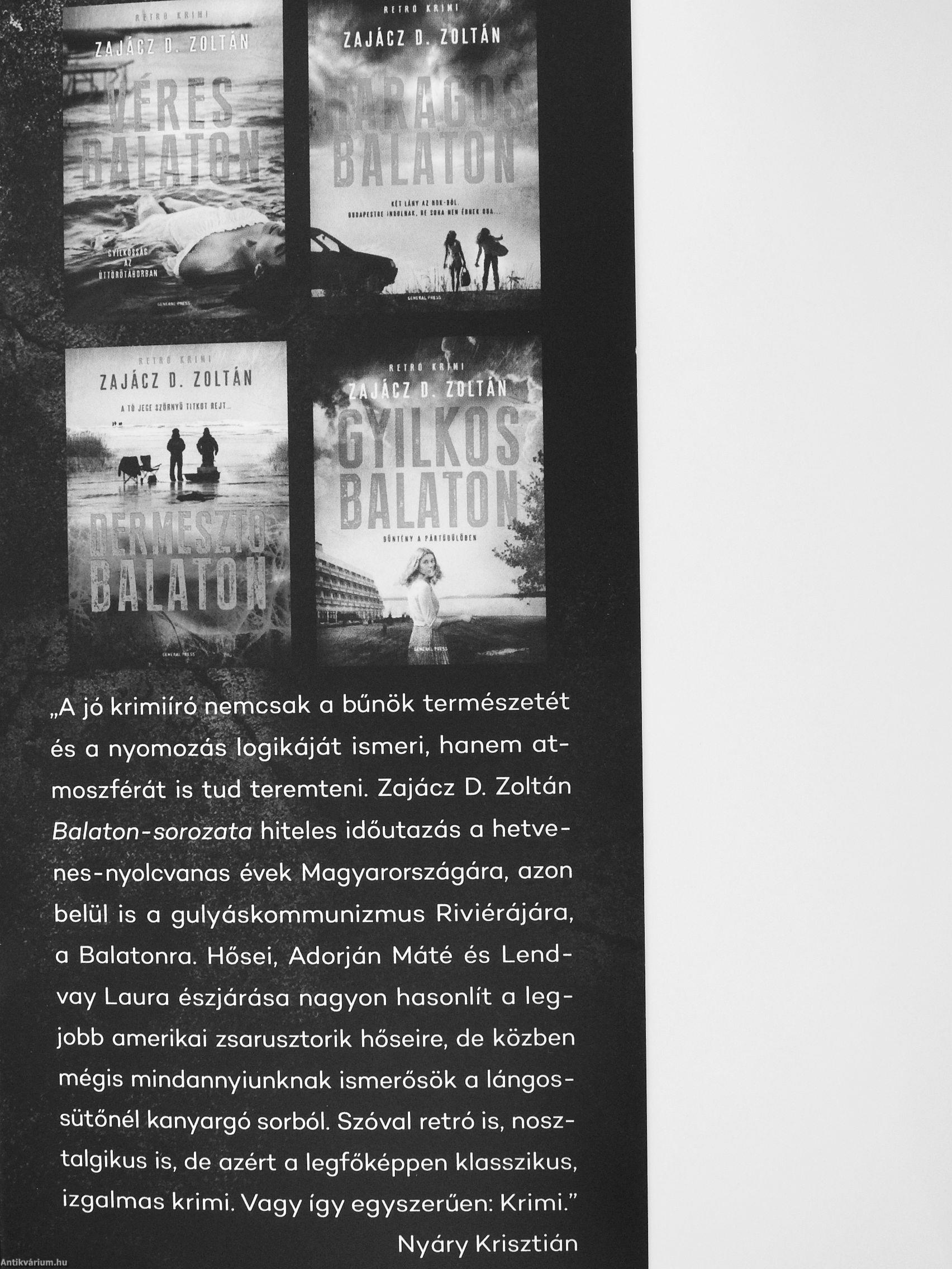 „A jó krimiíró nemcsak a bűnök természetét és a nyomozás logikáját ismeri, hanem atmoszférát is tud teremteni. Zajácz D. Zoltán Balaton-sorozata hiteles időutazás a hetvenes-nyolcvanas évek Magyarországára, azon belül is o gulyáskommunizmus Riviérájára, a Balatonra. Hősei, Adorján Máté és Lend-vay Laura észjárása nagyon hasonlít a legjobb amerikai zsarusztorik hőseire, de közben mégis mindannyiunknak ismerősök a lángos-sütőnél kanyargó sorból. Szóval retró is, nosztalgikus is, de azért a legfőképpen klasszikus, izgalmas krimi. Vagy így egyszerűen: Krimi."