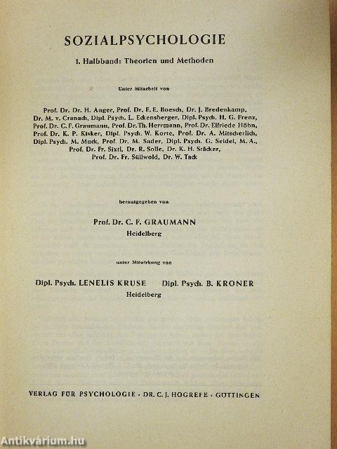 Sozialpsychologie 1. Halbband