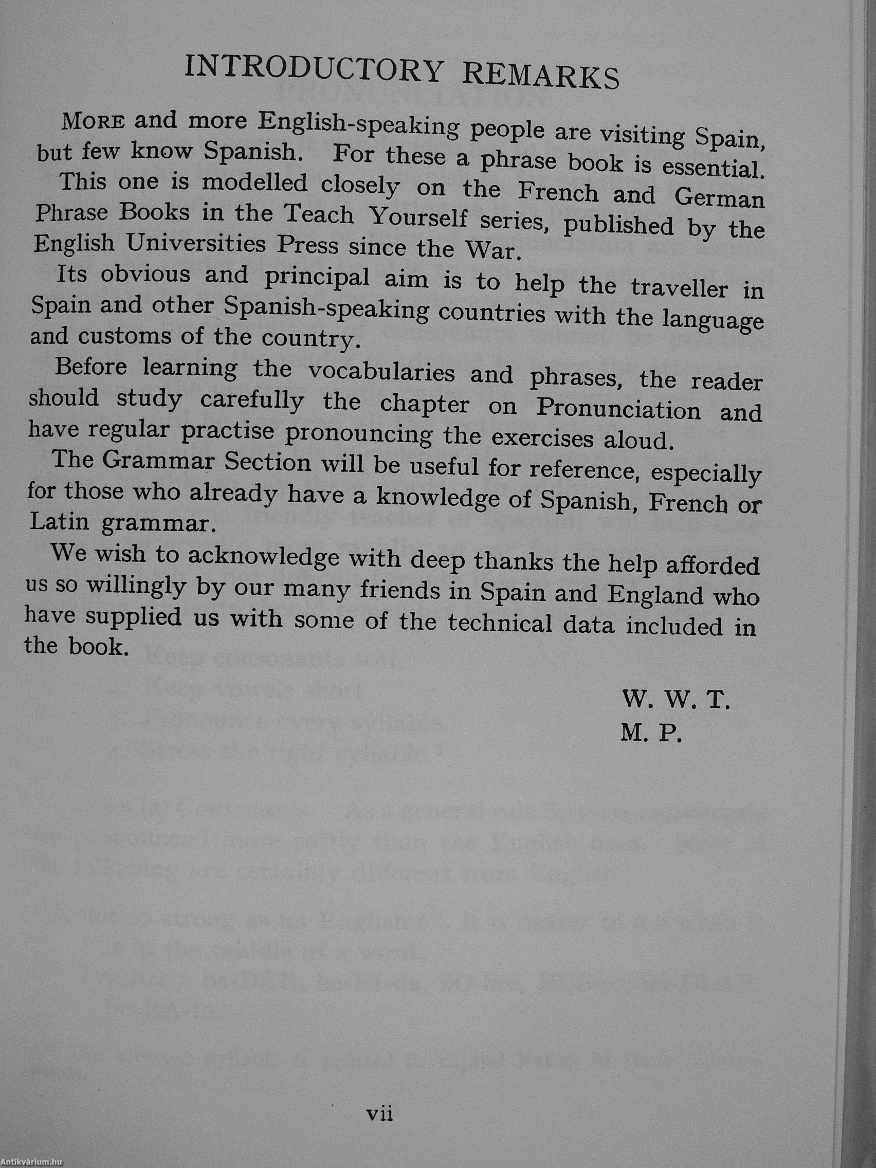 You may be in doubt as to pronunciation. Well — you can show the actual phrase to a Spaniard: and you will find him and his wife and friends most anxious to help you. But the Spaniard will understand your Spanish if you master the information on pro-nunciation which begins on page 9 and continues to page 14.