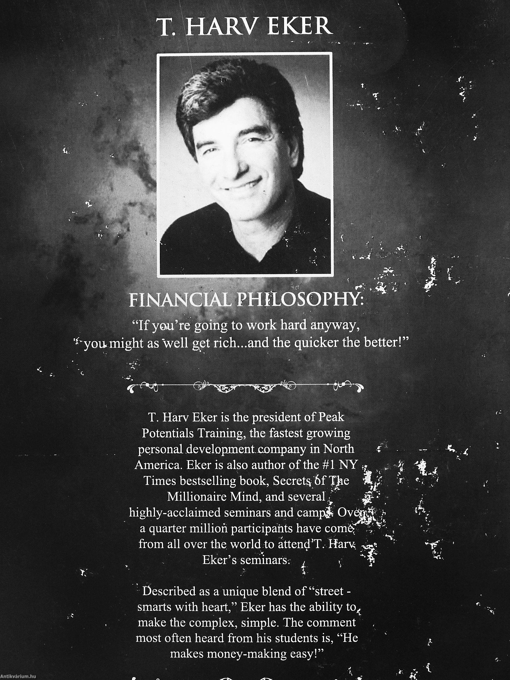 T. Harv Eker is the president of Peak Potentials Training, the fastest growing personal developmentxompany in North f" America. Eker is also author of the1 NY if , „ Times bestselling book, Secrets Sffte Millionaire Mind, and several highly-acclaimed seminars and campi -t