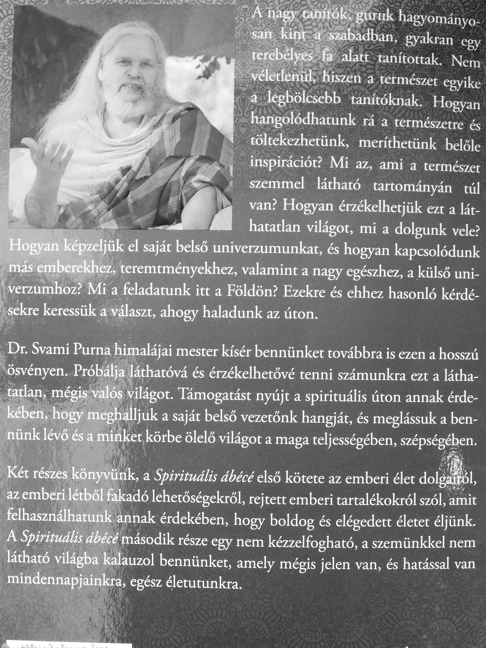 Dr. Svami Purna himalájai mester kísér bennünket továbbra is ezen a hosszú ösvényen. Próbálja láthatóvá és érzékelhetővé tenni számunkra ezt a láthatatlan, mégis valós világot. Támogatást nyújt a spirituális úton annak érdekében, hogy meghalljuk a saját belső vezetőnk... Tovább