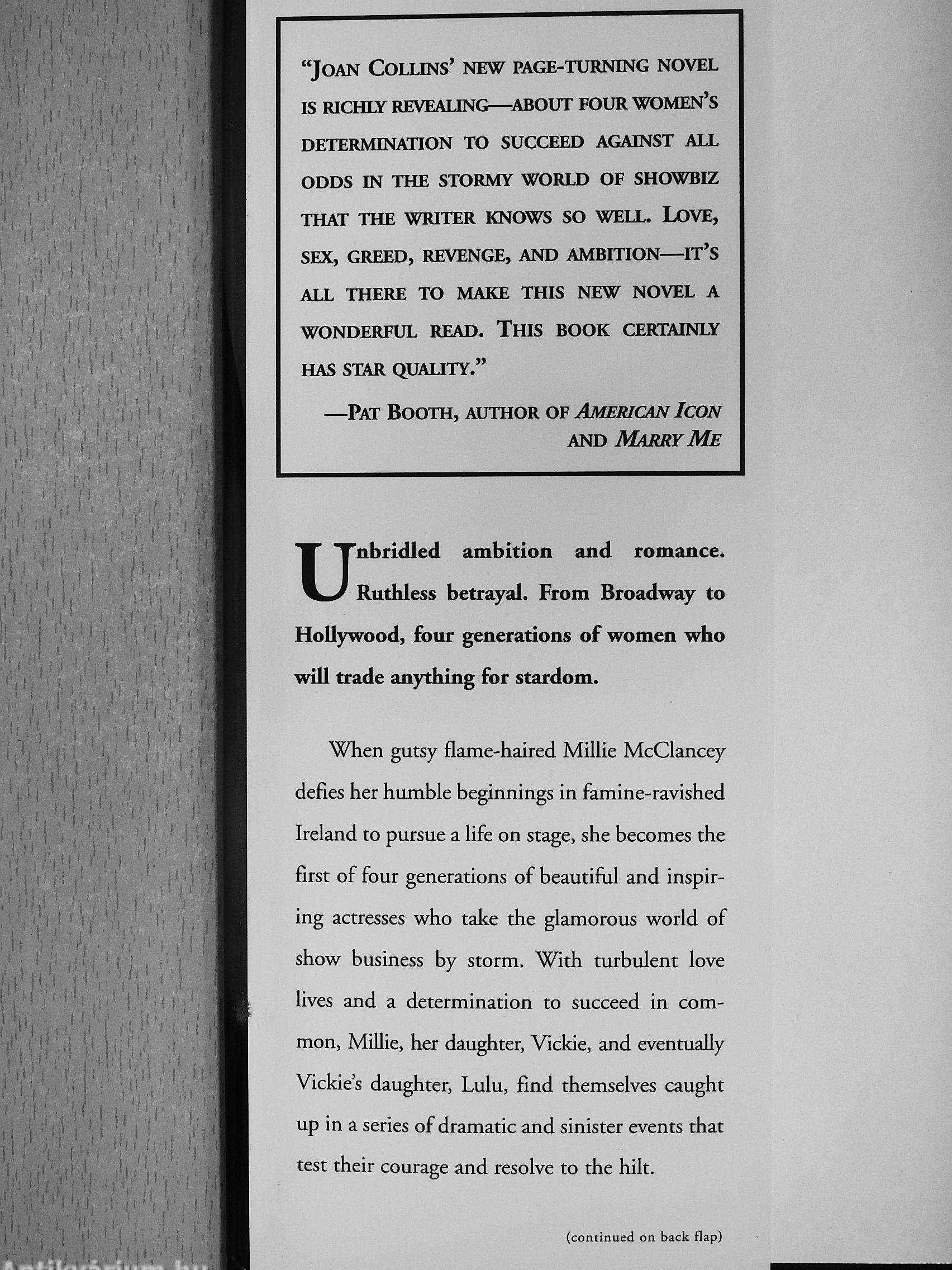 is richly revealing—about four women's determesiation to succeed against all odds in the stormy world of showbiz that the writer knows so well. love, sex, greed, revenge, and ambition—it's all there to make this new novel a wonderful read. This book certainly has star quality."