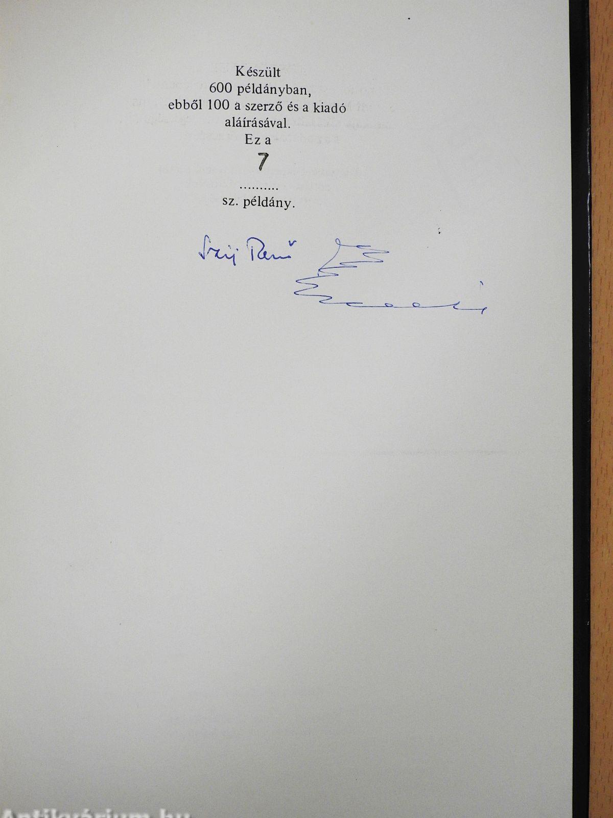 | Megjegyzés: | Szíj Rezső szerző és Kovács Miklós felelős kiadó által aláírt példány. Készült 600 példányban, ebből 100 a szerző és a kiadó aláírásával. Sorszámozott példány. Fekete-fehér fotókkal, reprodukciókkal illusztrált. |