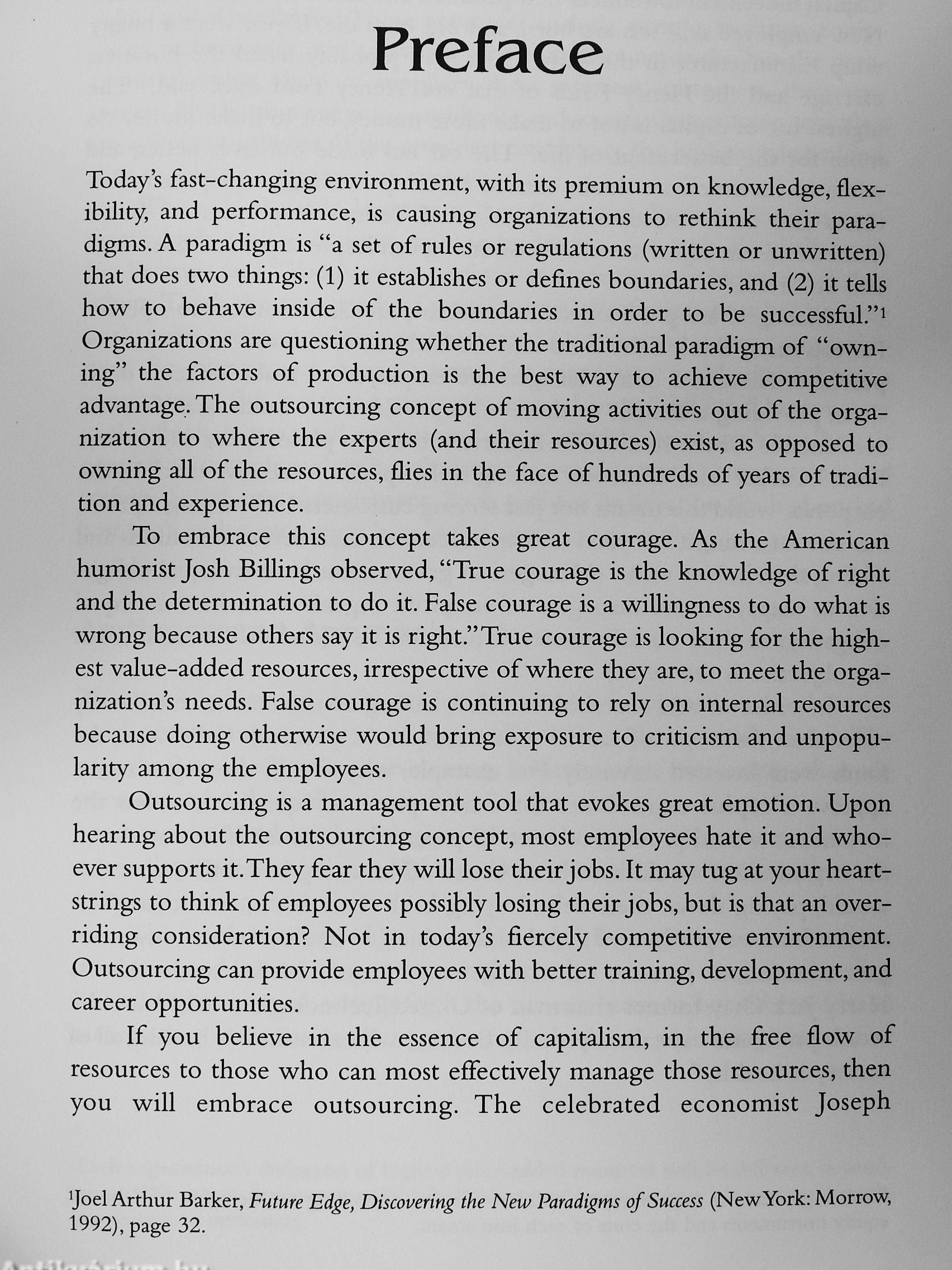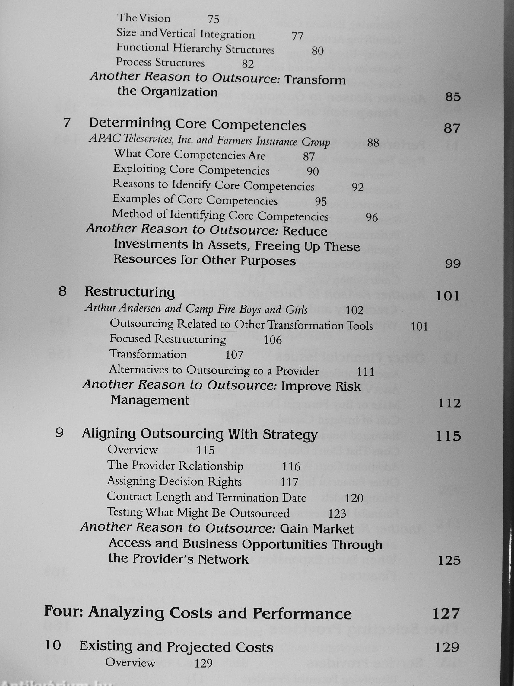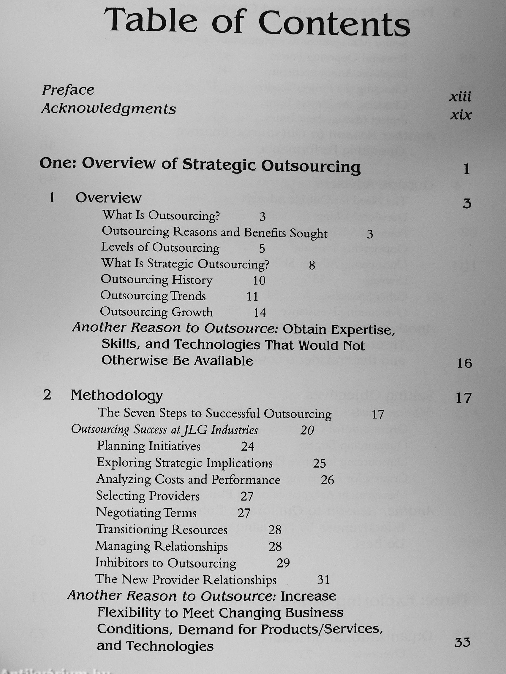 "As corporate America downsizes, outsourcing is the most important tool to restructure the organization. Strategic Outsourcing shows how outsourcing can benefit the corporation and how a successful outsourcing strategy is accomplished."