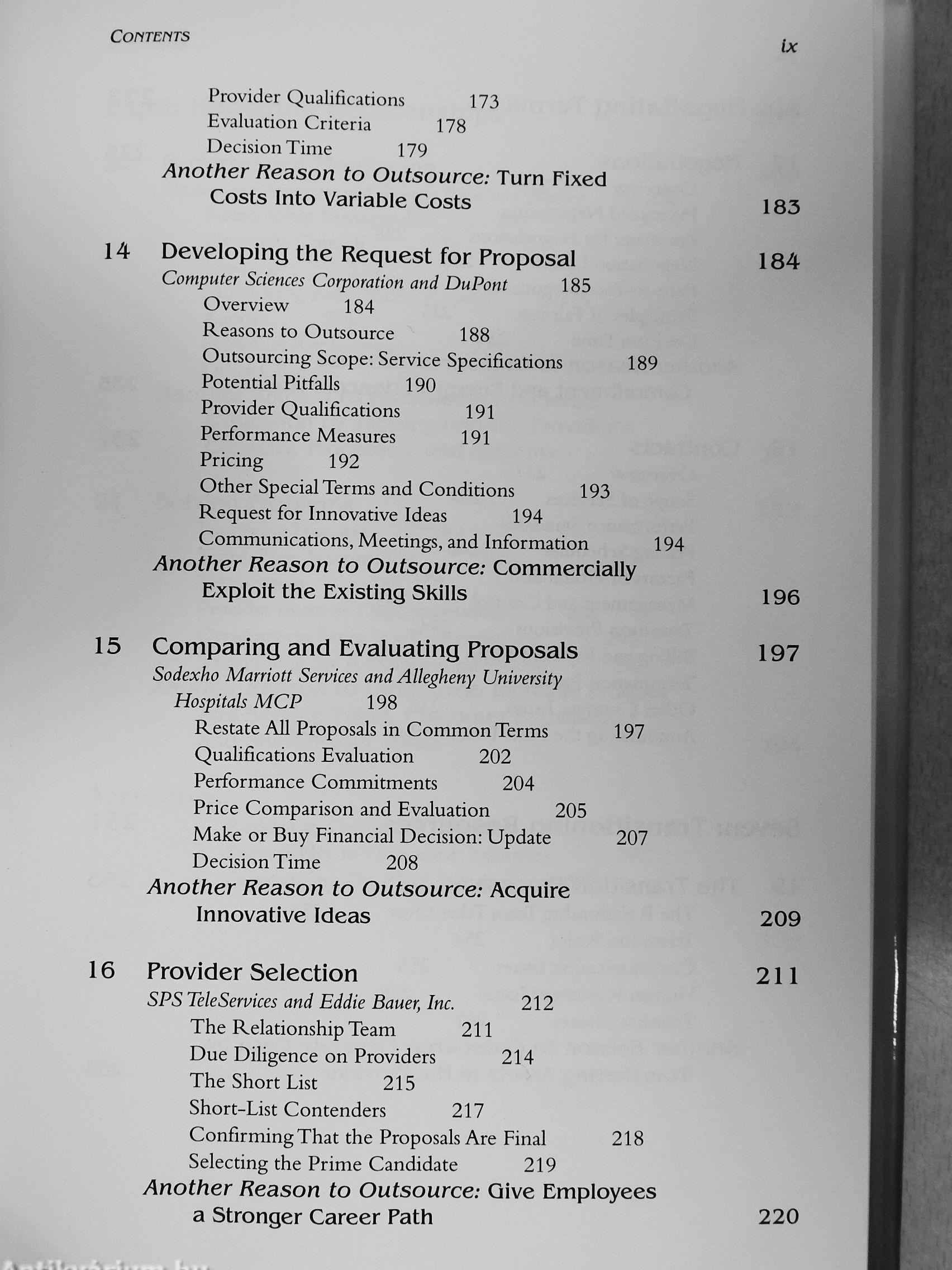 By following this seven-step methodology, you'll effectively sidestep the pitfalls of outsourcing you'll alleviate the doubts and fears that outsourcing inevitably provokes and you'll reap the full benefits you're hoping to achieve. Your company can focus on its core competencies, improve its operating performance, obtain knowledge and skills not available in-house, gain market access using the provider's network, cut costs, and much more.