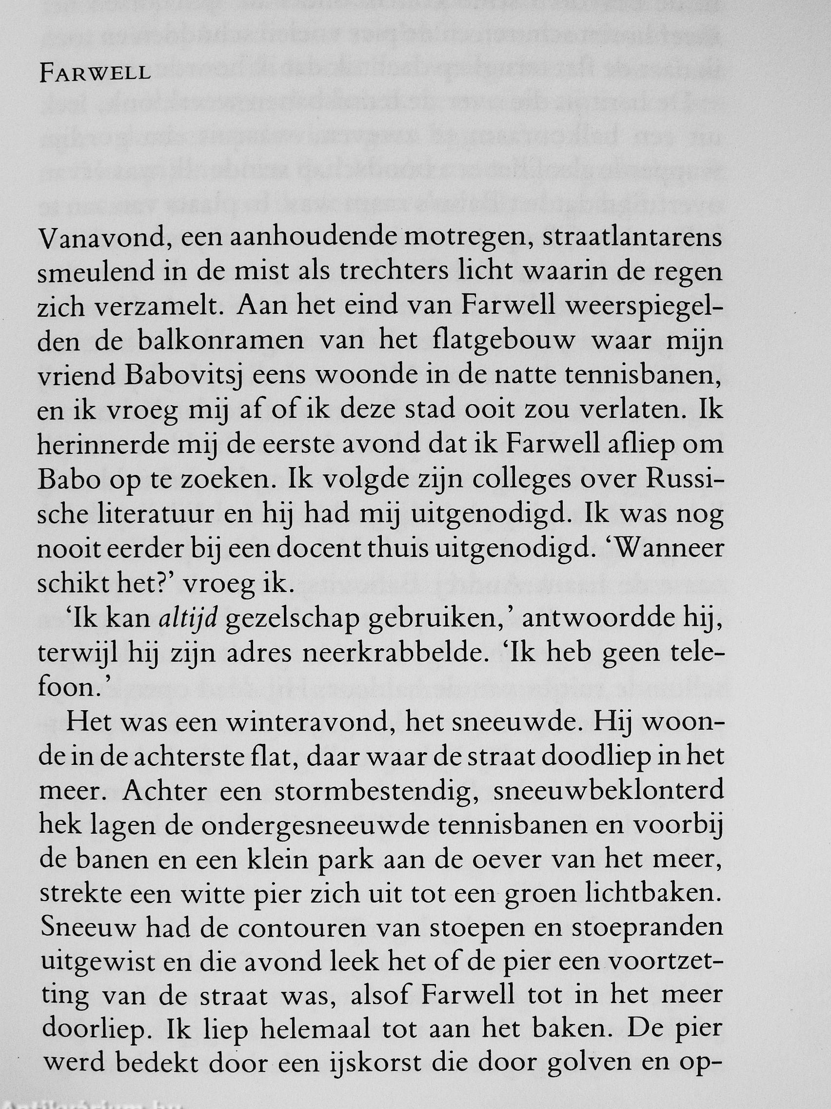 ledere avond ni«»et de {{roolvader met zijn pijnlijk gezwollen voeten in een teiltje waler zitlen, en doet de jongen wanhopige pogingen oni de juisle Engelse spelling le leren van een laal die heni van huis uil vreemd is. Een verdieping hoven de oiule man en zijn kleinkind speelt een jonge vrouw ledere av<md piano. Naarmate de tijd vordert leert de anders zo zwijgzame en zonderlinge grootvader zijn kleinkind de verschillende Walsen en eludes van Cho])in le onderscheiden. Mel zijn vingere op hei lafel-kleed speell de man de muziek na, ook al is er na enige lijd niels meer le hören, en de jongen raoel raden wal er wordl gespeeld. De lere relalie lussen de zonderlinge grootvader en de jongen wordl in prächtige, poetische laal beschreven.