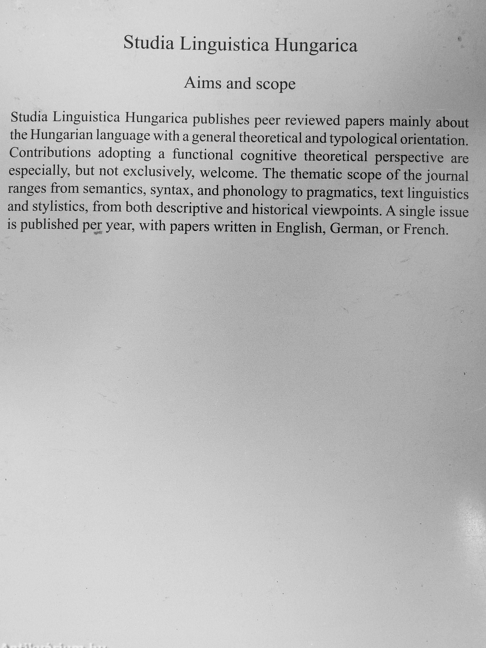 | Sorozatcím: | Studia Linguistica Hungarica |