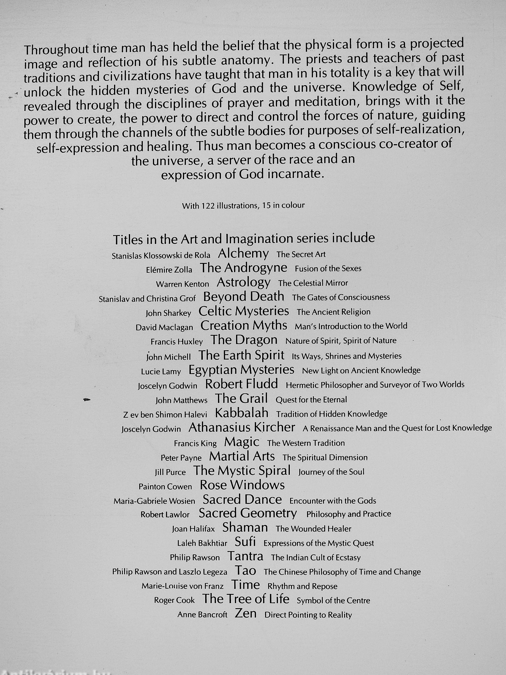 ElémireZolla The Androgyne Fusion of the Sexes Warren Kenton Astrology The Celestial Mirror Stanislav and Christina Grof Beyond Death The Gates of Consciousness )ohn Sharkey Celtic Mysteries The Ancient Religion David Maclagan Creation Myths Man's Introduction to the World Francis Huxley The Dragon Nature of Spirit, Spirit of Nature fohnMichell The Earth Spirit its ways, Shrlnes and Mysteries Lucie Lamy Egyptian Mysteries New Light on Ancient Knowledge loscelyn Godwin Robcrt Fludd Hermetic Philosopher and SurveyorofTwo Worlds ¦— lohnMatthews The Grail Quest for the Eternal