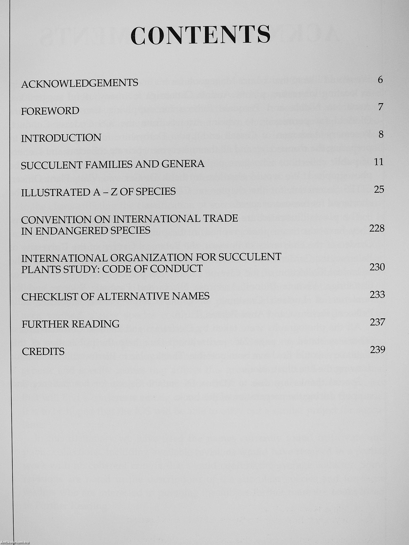 A special feature of the text is the inclusion of the CITES (Convention on International Trade in Endangered Species) status for all those species that are included in the Convention's Appendix I and Appendix II of protected plants. There is also a description of the way in which cites is organized to monitor the trade in collectable species, as well as a summary of the code of conduct of the International Organization for Succulent Plants Study for collectors.
