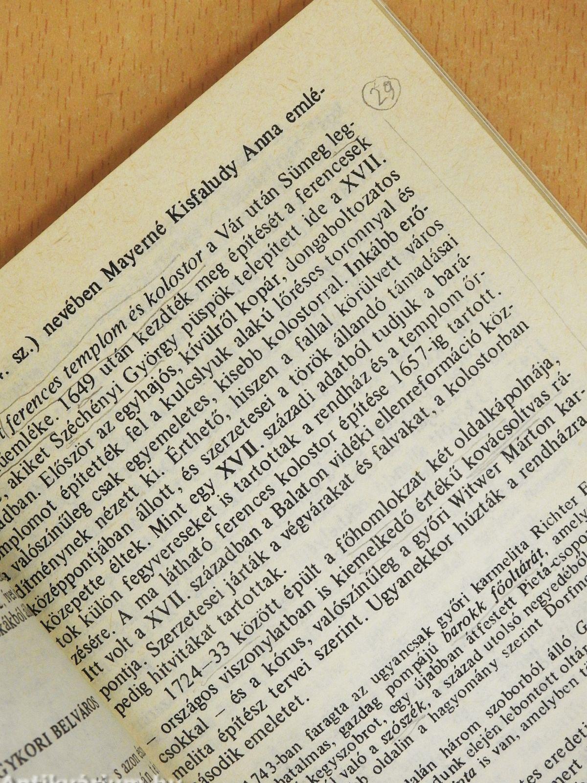 A gerinc elszíneződött, több lapon aláhúzás, jelölés, bejegyzés látható.