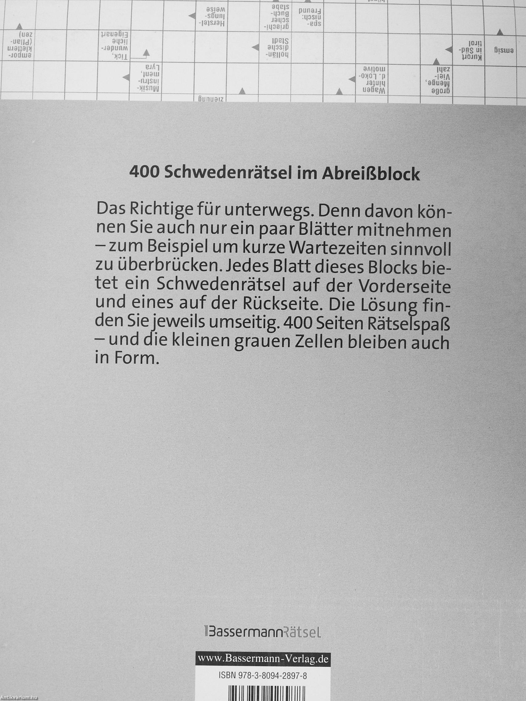 Das Richtige für unterwegs. Denn davon können Sie auch nur ein paar Blätter mitnehmen -zum Beispiel um kurze Wartezeiten sinnvoll zu überbrücken. Jedes Blatt dieses Blocks bietet ein Schwedenrätsel auf der Vorderseite und eines auf der Rückseite. Die Lösung finden Sie jeweils umseitig. 400 Seiten Rätselspaß - und d^ie kleinen grauen Zellen bleiben auch in Form.