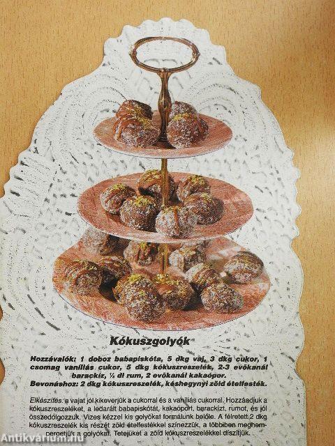 Ünnepek előtt a háziasszonyoknak mindig fejtörést okoz, hogy mit süssenek, milyen újabb süteménnyel lepjék meg családjukat és barátaikat. A vetélkedés még a hagyományos süteménykészítés területén is folyik. A füzetben szereplő bejglik, patkók, kiflik, piskóták, fánkok, kókuszos és gesztenyés golyók, teasütemények, lepények és különböző gyümölcsös kosarak hosszú sora csábítóan kínálkozik.