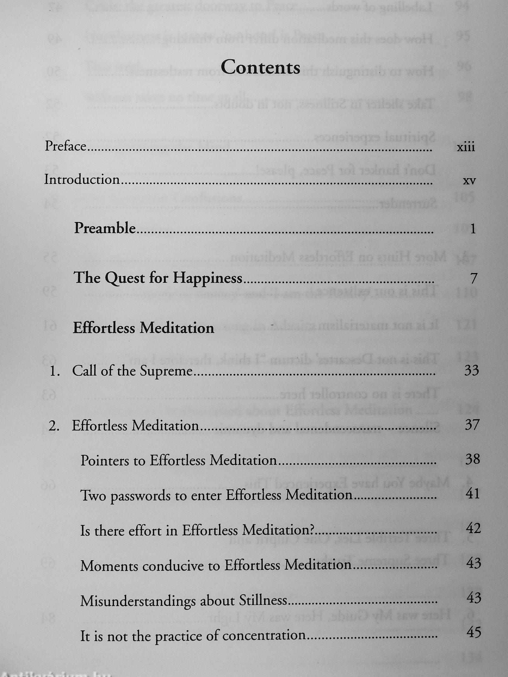 You don't have to be spiritually inclined, or be from any particular walk of life, to experiment with Effordess ^^mmfflk Meditation. It is enough that you are willing to give it S^fflmff a try. Once you "stumble" upon it, you will realise that to be happy you don't need the support of any faith or beUef -including the cherished one of enlightenment. By stumbling upon Effordess Meditation, you will have arrived at the heart of all efforts in your search for Peace and Happiness. You wiU soon realise that effordessness itself is Peace, and whatever you are aware of naturally and spontaneously is also Peace. From then on, life itself becomes living in meditation.