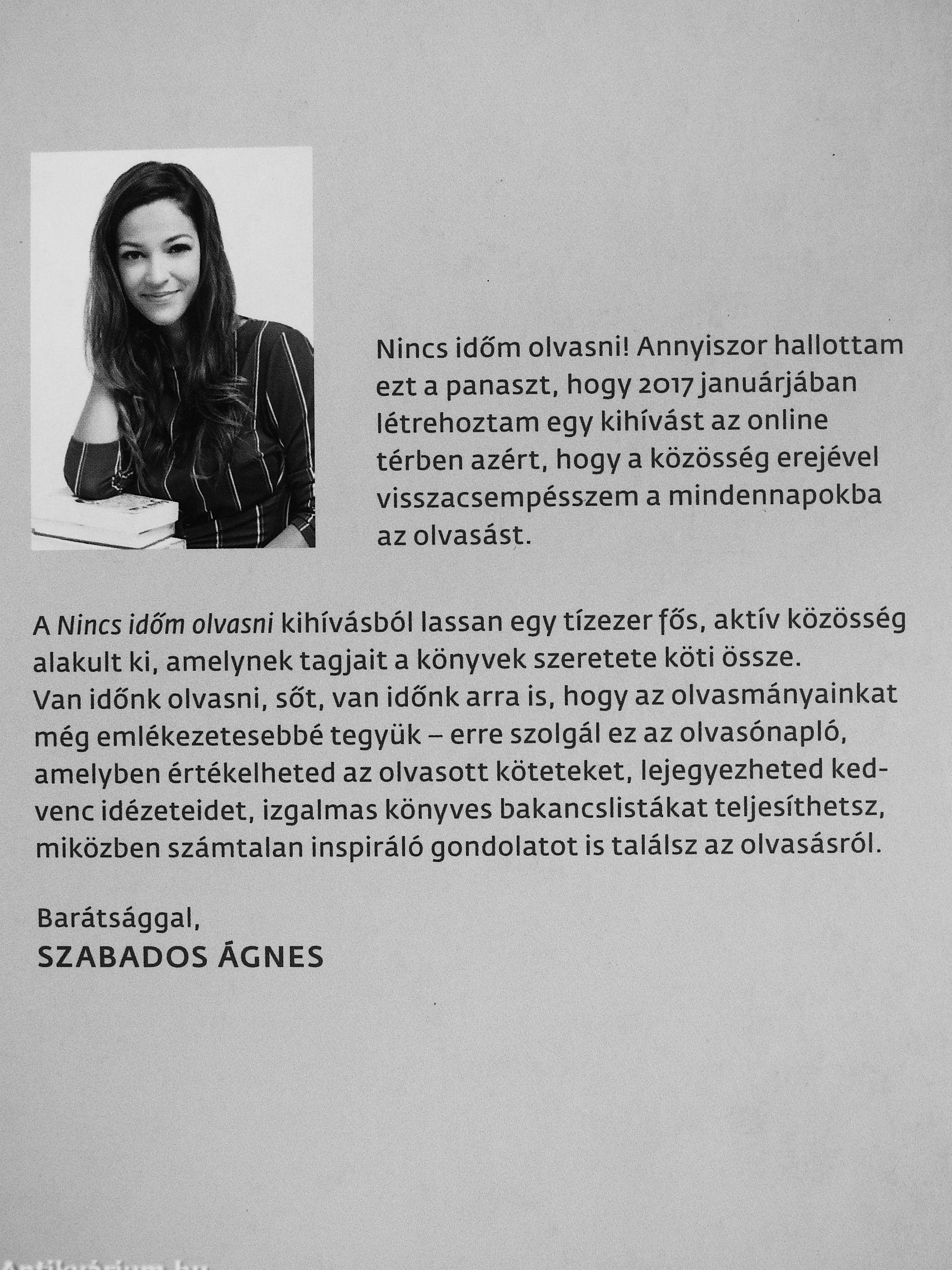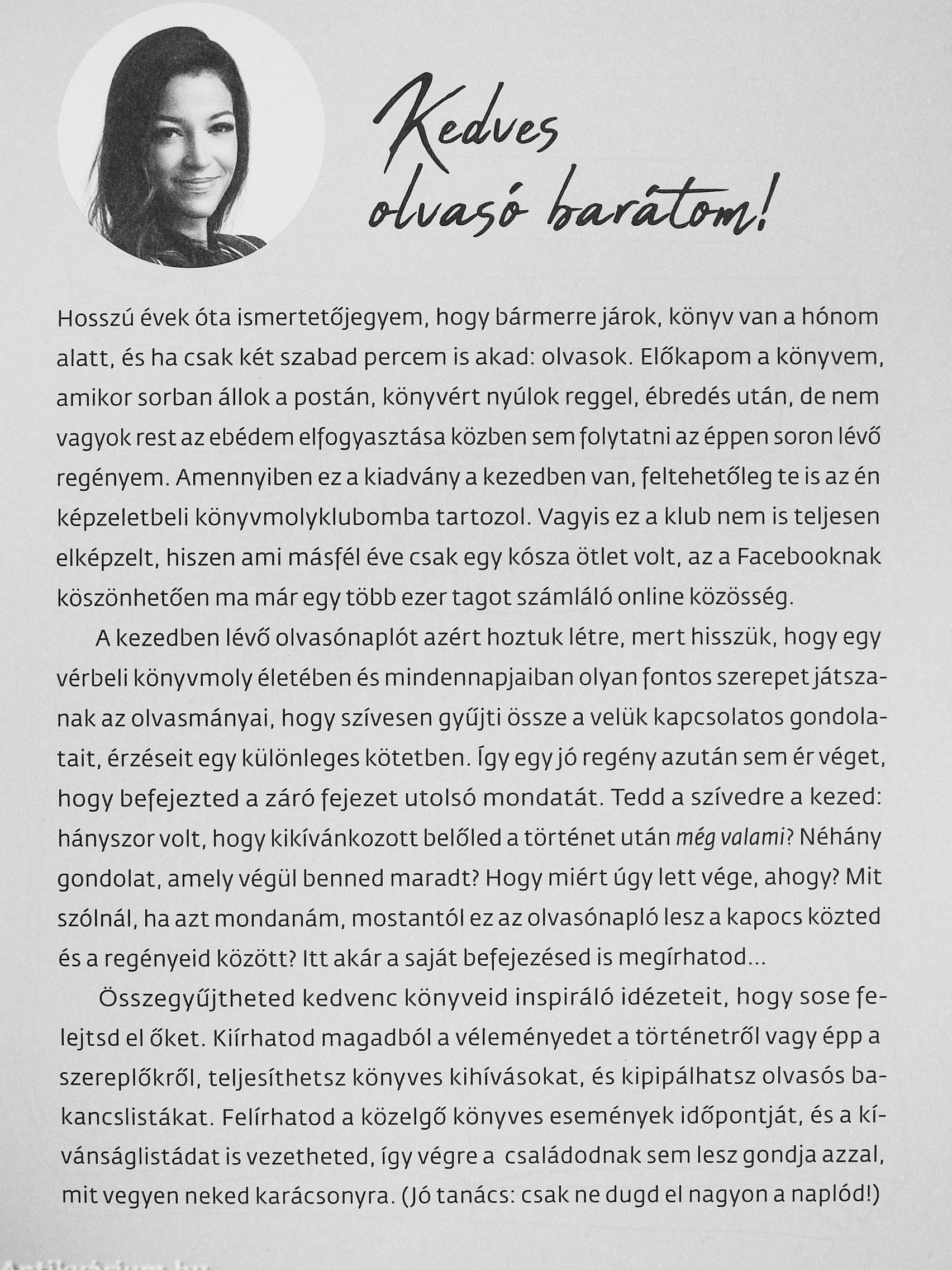 A Nincs idom olvasni kihívásból lassan egy tízezer fős. aktív közösség alakult ki, amelynek tagjait a könyvek szeretete köti össze. Van időnk olvasni, sőt. van időnk arra is, hogy az olvasmányainkat még emlékezetesebbé tegyük - erre szolgál ez az olvasónapló, amelyben értékelheted az olvasott köteteket, lejegyezheted kedvenc idézeteidet, izgalmas könyves bakancslistákat teljesíthetsz, miközben számtalan inspiráló gondolatot is találsz az olvasásról.