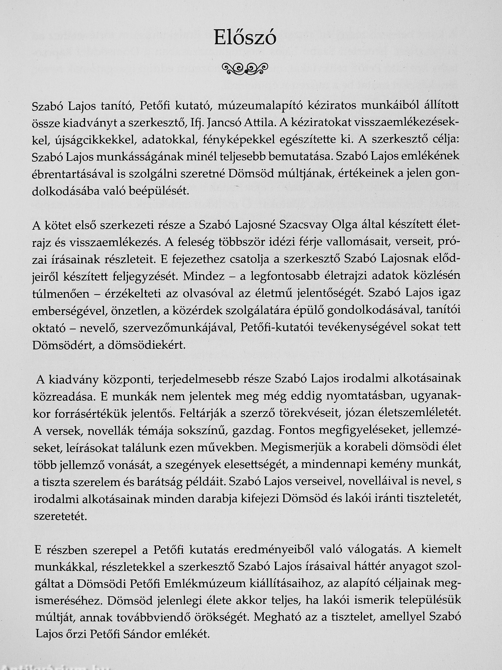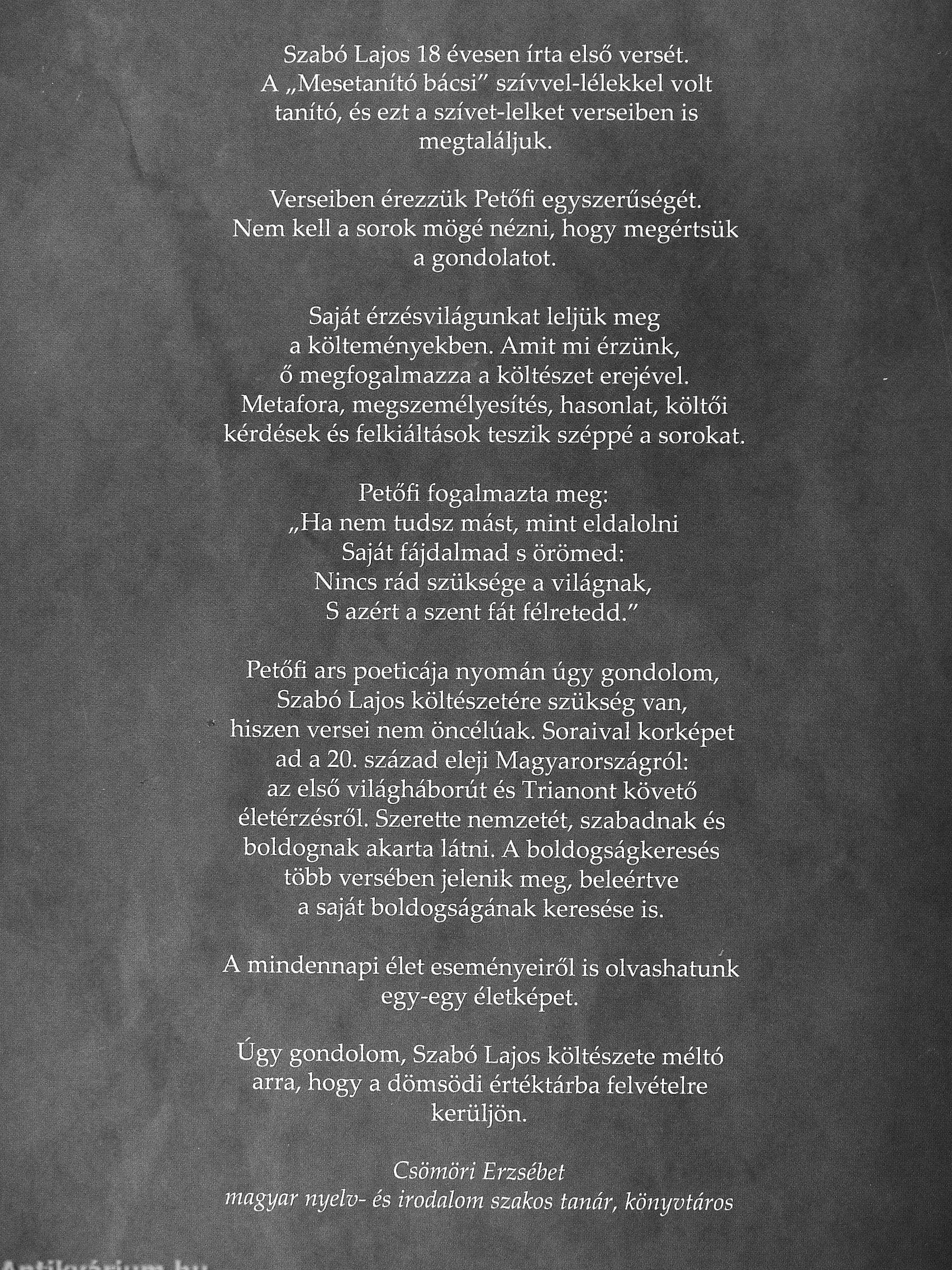 Úgy gondolom. Szabó Lajos költészete méltó arra, hogy a dömsödi értéktárba felvételre kerüljön.