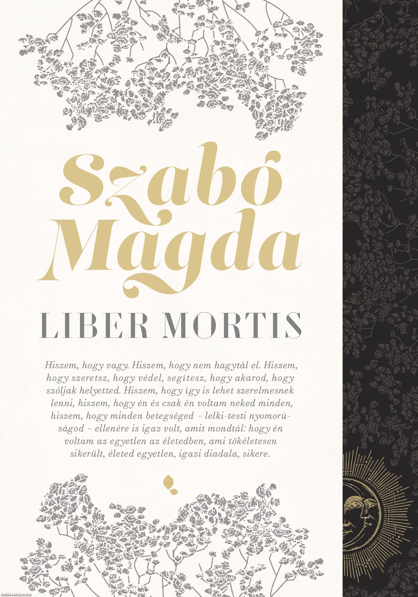 A Liber Mortist férje, szerelme, írótársa halála után három hónappal, 1982. május 25-én kezdte írni Szabó Magda, és 1990. február 27-én tette ki a pontot az utolsó mondat végére. Az írás a gyászmunka része, az életben maradás eszköze volt számára, csak így dolgozhatta fel a feldolgozhatatlant. A regény gyötrelmes, megrendítő belső monológ és képzeletbeli párbeszéd Szobotka Tiborral, hiszen Szabó Magda hitt az e világ és a túlvilág közti átjárásban. Harmincnégy együtt töltött, minden megpróbáltatása és viszontagsága ellenére gyönyörű évet idéz fel, ezt siratja, ezt könyörgi vissza. Képtelen megbékélni azzal, hogy mindez egyszer s mindenkorra véget ért. Írásainak minden szavából, sorából süt a fájdalom, az eltűnt idő nyomába eredve, napról napra szakadatlan, engesztelhetetlen harcot vívva az elmúlással. S közben lelkifurdalás gyötri, önvád marcangolja: vajon méltó társa volt-e imádott férjének, vajon mindent megtett-e azért, hogy Szobotka kibontakoztathassa alkotói tehetségét, és írói sikereket érhessen el? Most szeretné jóvátenni vétkét, ha volt, és ez az egyedüli indok a folytatásra, a tovább élésre. Neki még feladata van: gondoznia kell férje életművét, és elérnie, hogy Szobotka Tibor elfoglalhassa végre méltó helyét a magyar irodalomban. A Liber Mortis, azaz a Halál könyve így válik egy mindent lebíró, síron túli, már-már mitológiai szerelem könyvévé, míg a halottas könyvből szerelmes könyv lesz, hiszen "mindenkinek csak egyvalaki jut, akinek a nevét elkiálthatja a halál pillanatában..."
