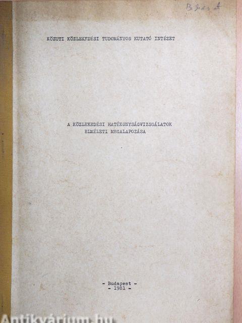 A közlekedési hatékonyságvizsgálatok elméleti megalapozása