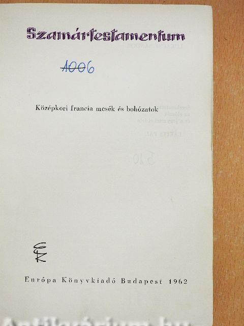 | Rutebeuf: Szamártestamentum (Benjámin László) | 108 |