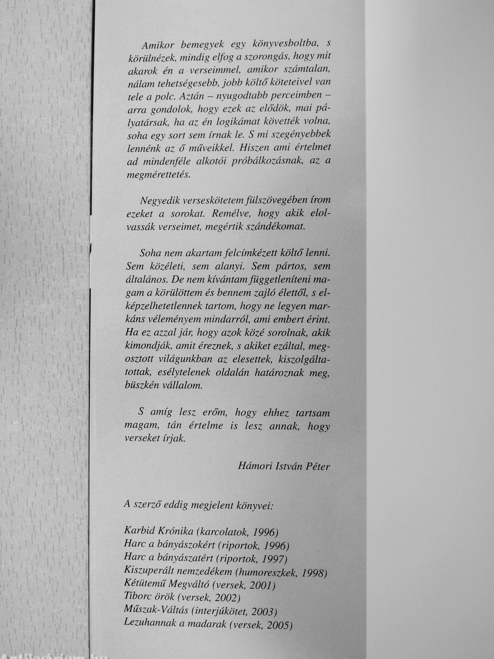 Negyedik verseskötetem fülszövegében írom ezeket a sorokat. Remélve, hogy akik elolvassák verseimet, megértik szándékomat.