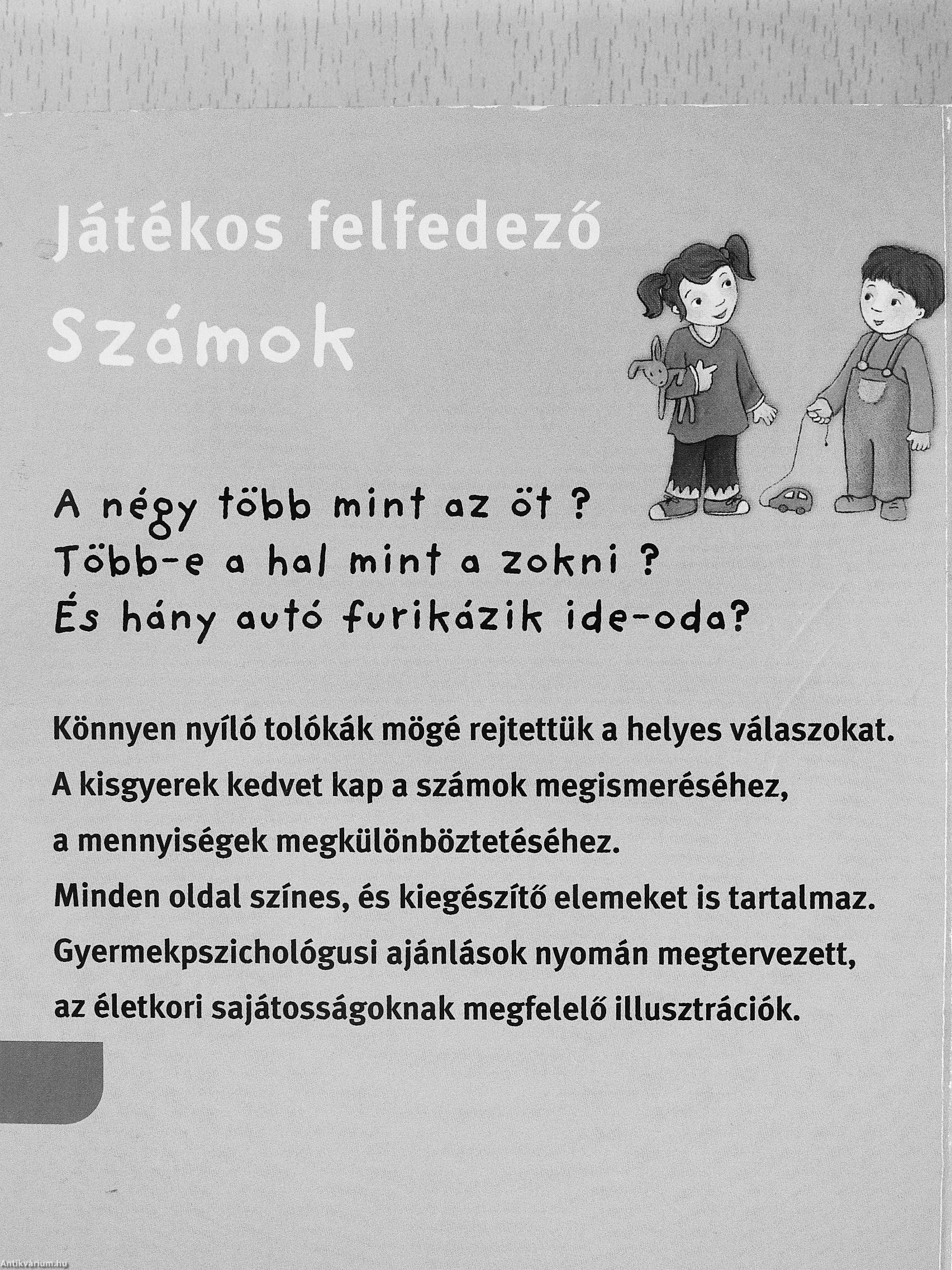 | Megjegyzés: | Egész oldalas, színes illusztrációkkal. Minden oldalon eltolható kis ablakokkal. Keménylapos mesekönyv. |