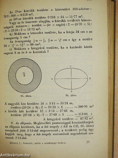 | A közönségesebb testek felülete és köbtartalma | 365 |