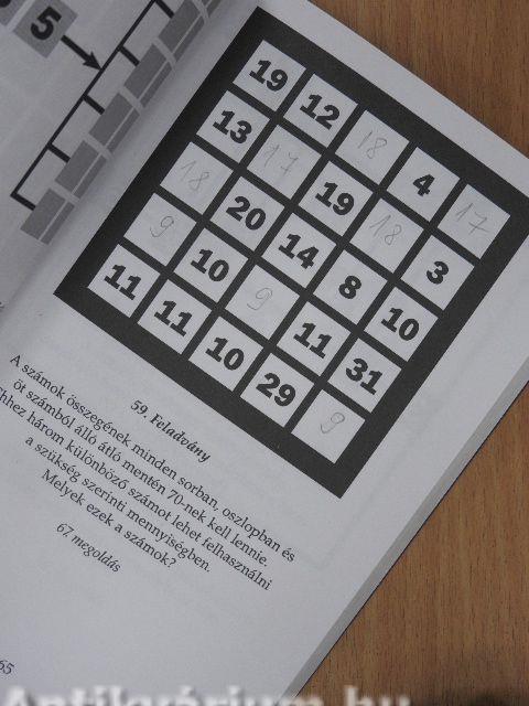 A Mensa-könyvek fejtörői a legélesebb elmét is próbára teszik. Ki-ki felmérheti az inteligenciáját az e könyvbe foglalt 200-nál is több feladvánnyal, melyek közül találunk vizuális rejtvényeket, négyzetháló-problémákat, műveltségi kérdéseket, számrejtvényeket, logikai feladványokat és még sok mást.
