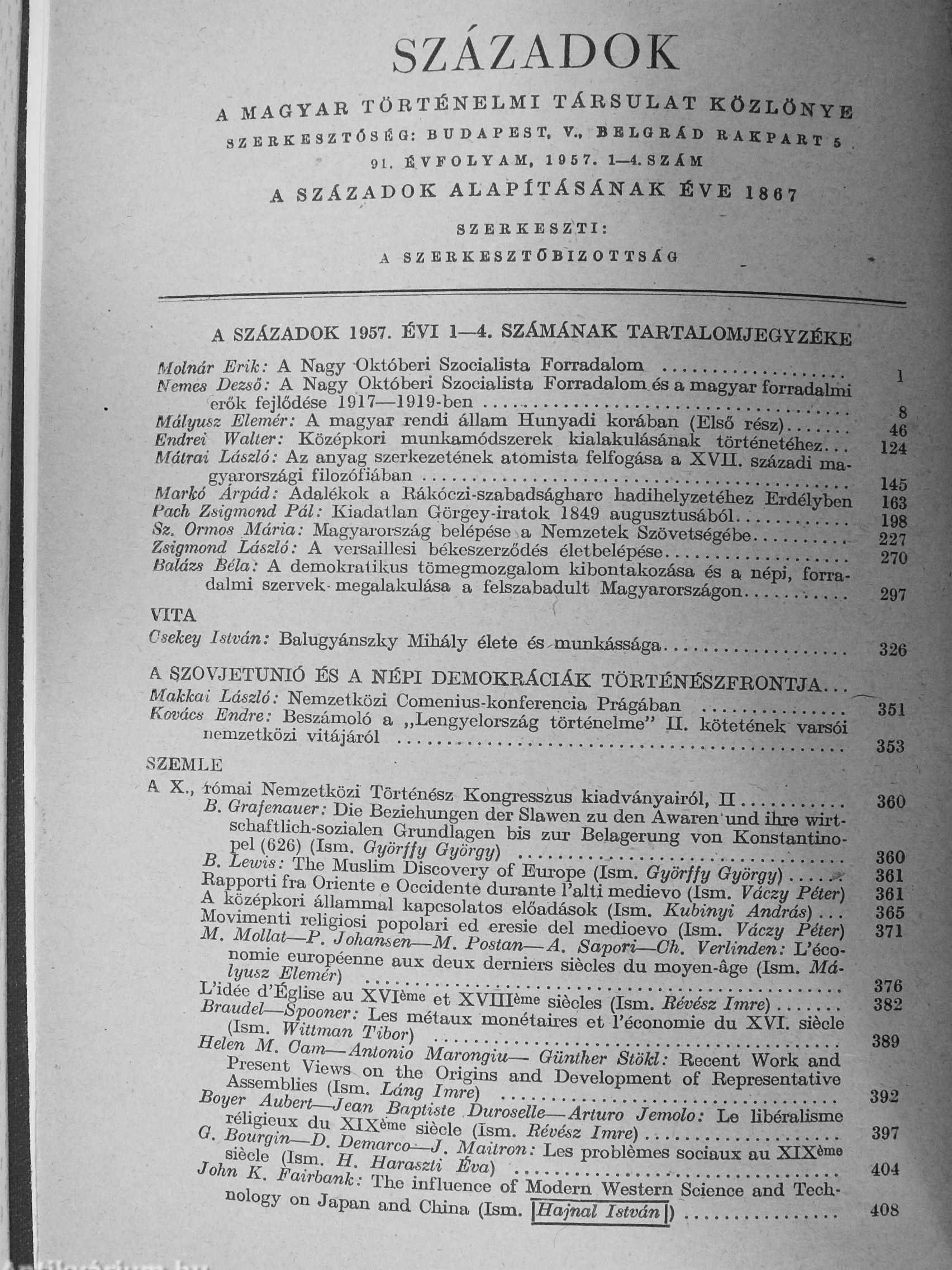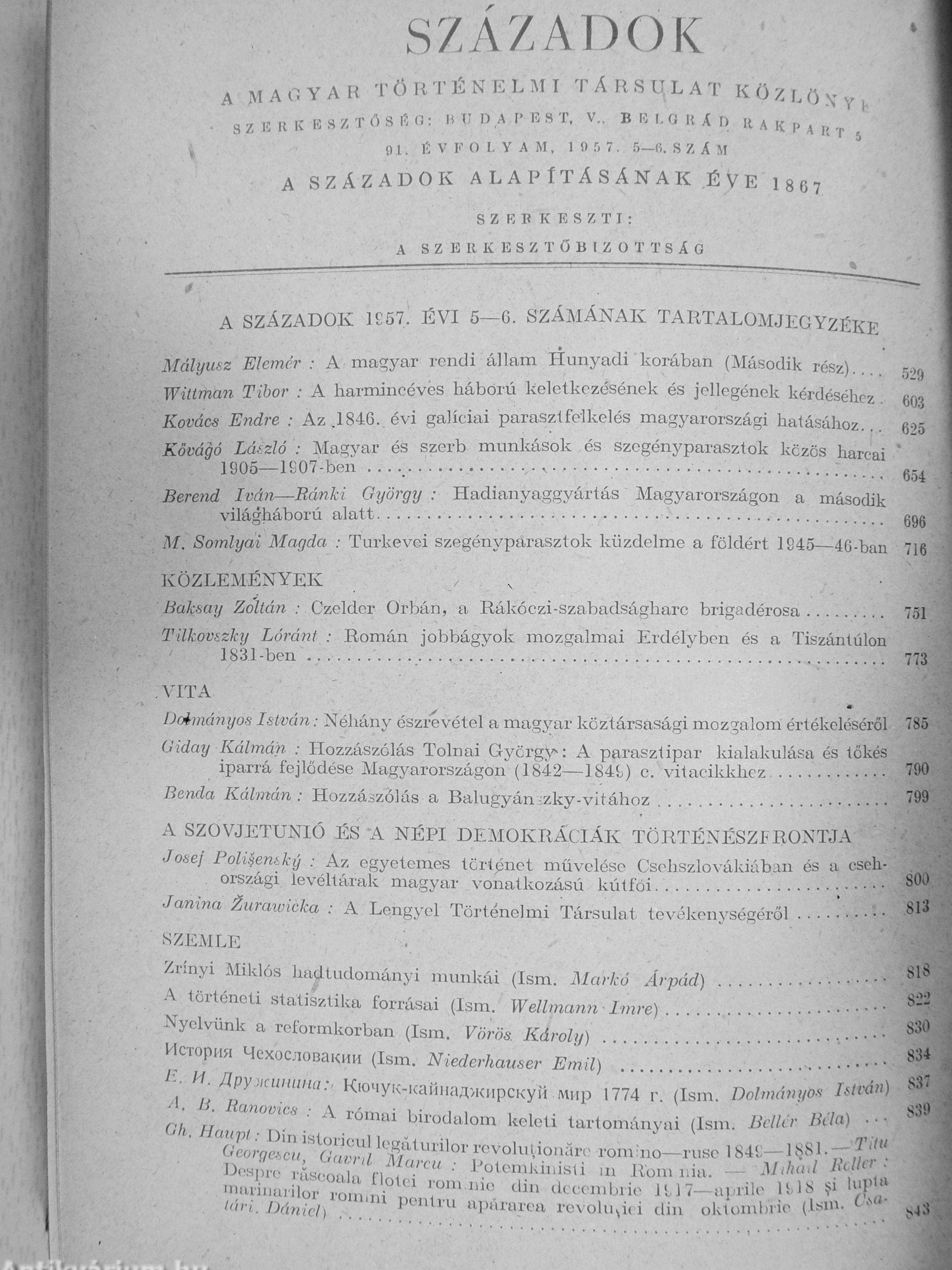 | Sorozatcím: | Századok |