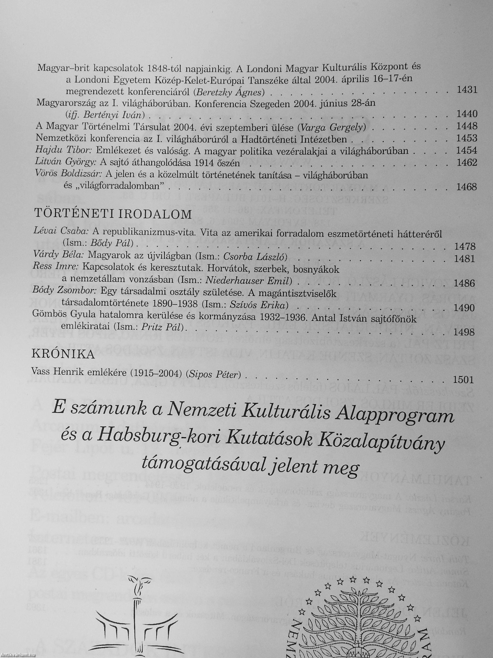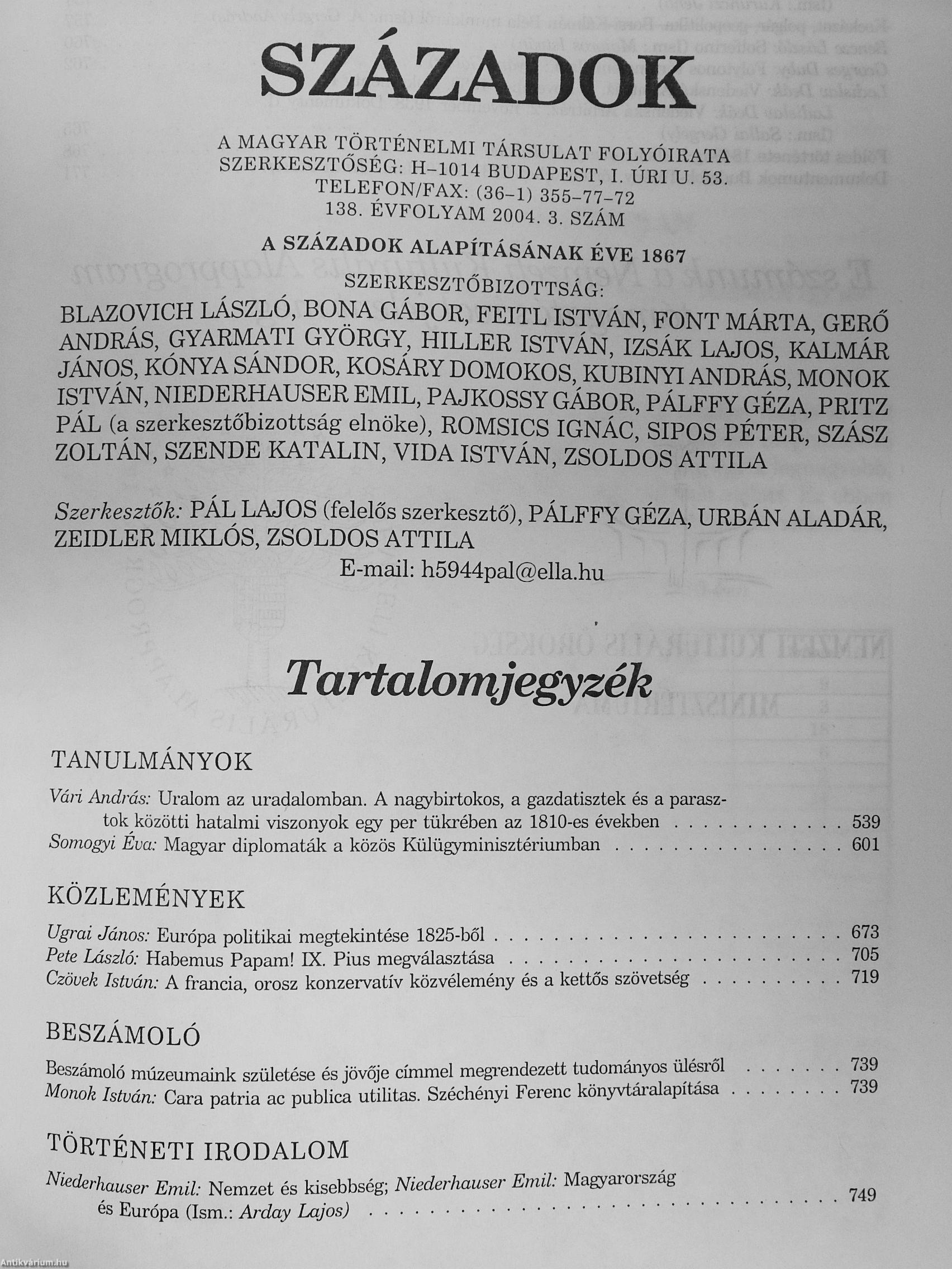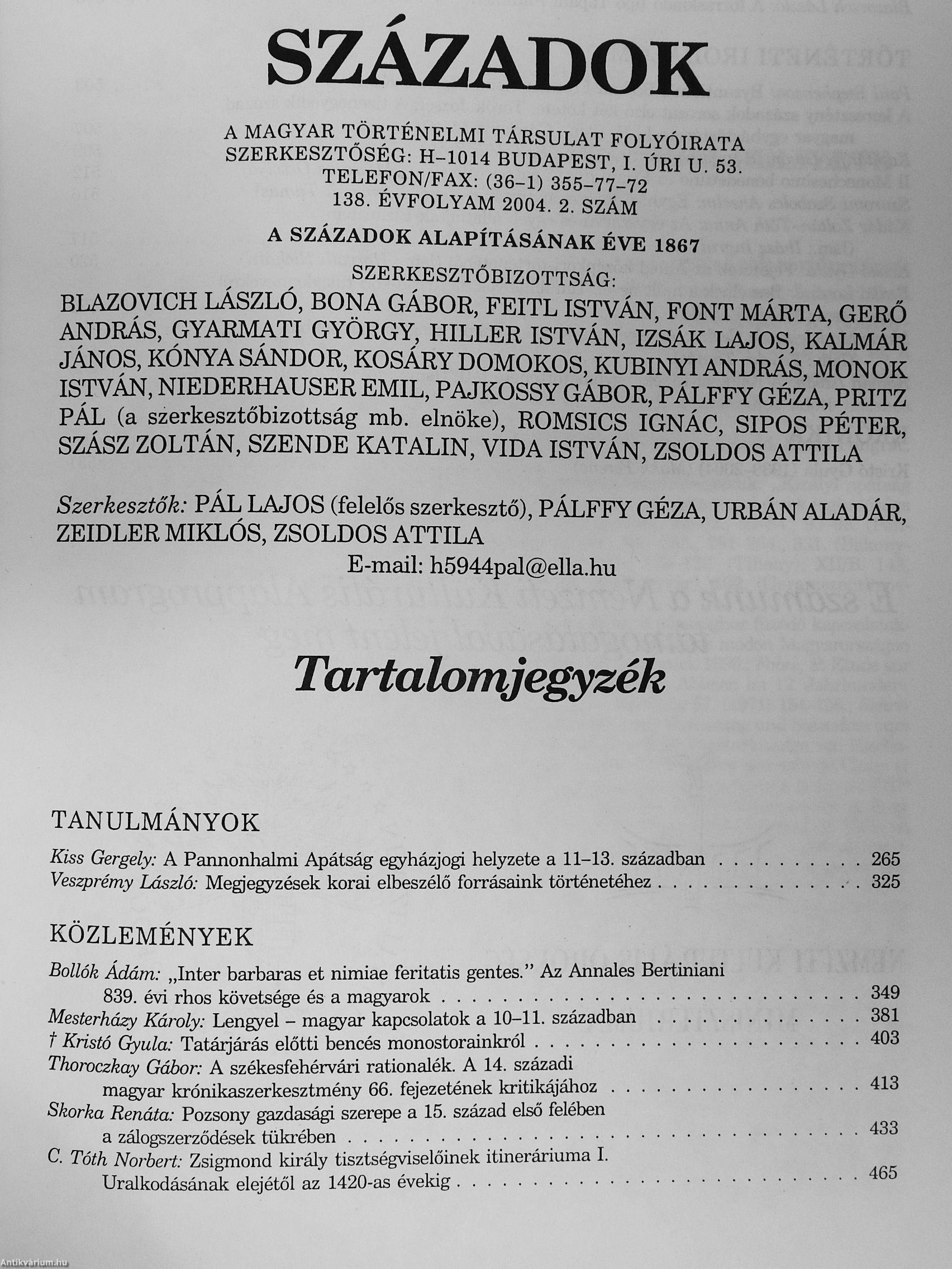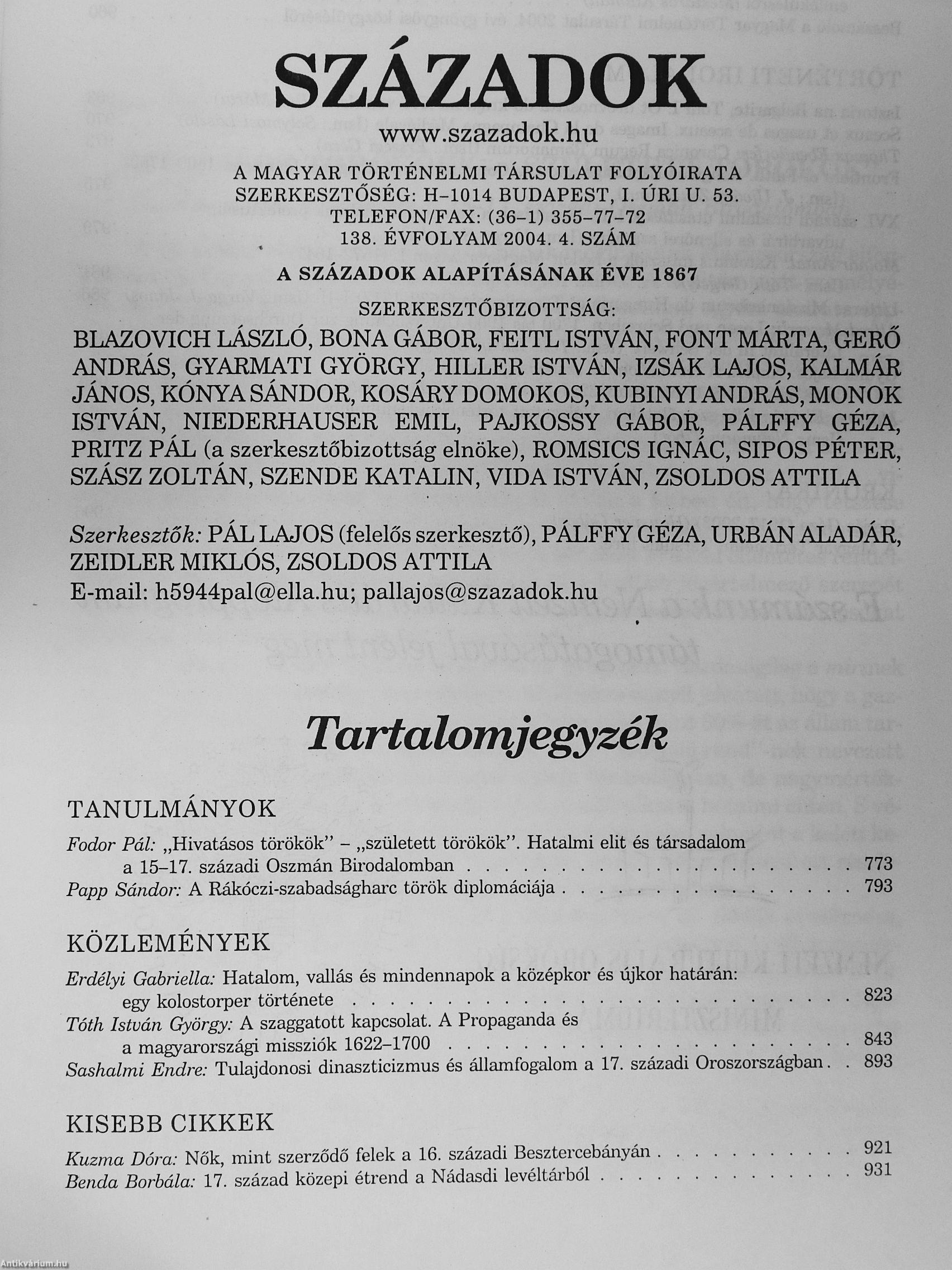 Századok 2004/1-6. Századok 2004/1-6. Századok 2004/1-6. Századok 2004/1-6.