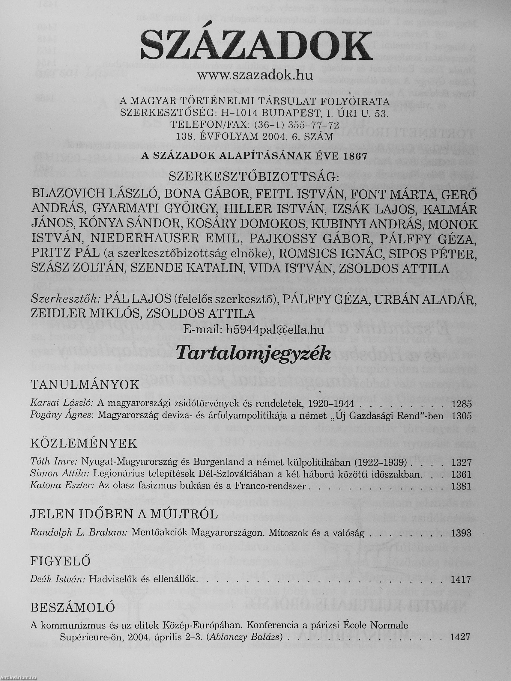 Századok 2004/1-6.