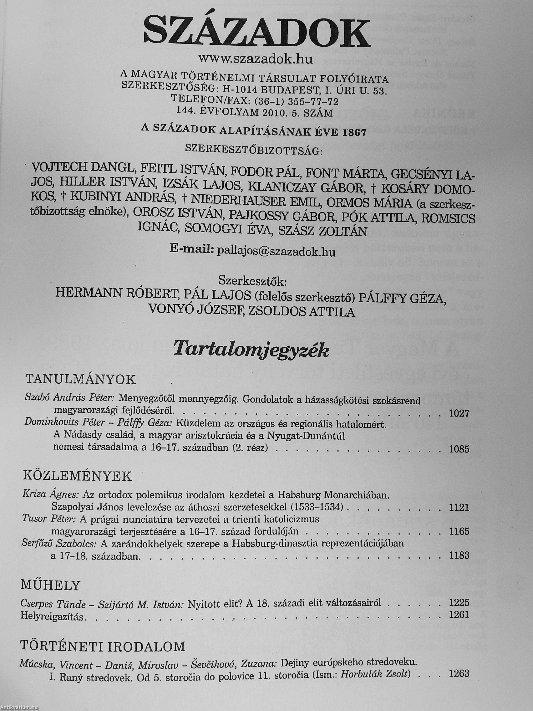 A Magyar Történelmi Társulat Folyóirata - 144. évfolyam 5. szám