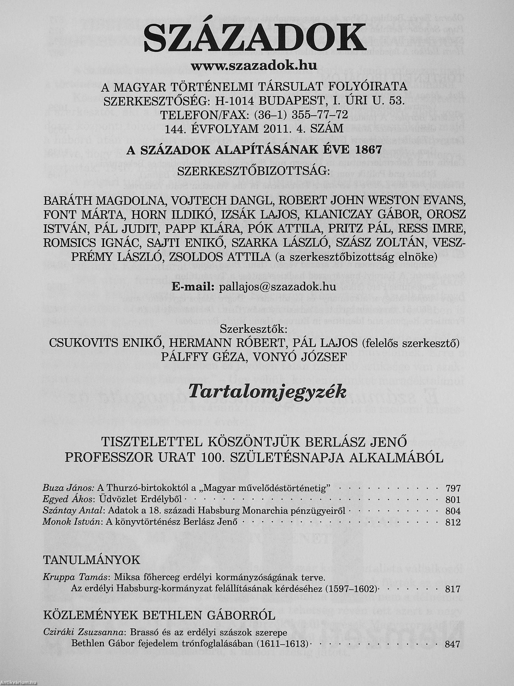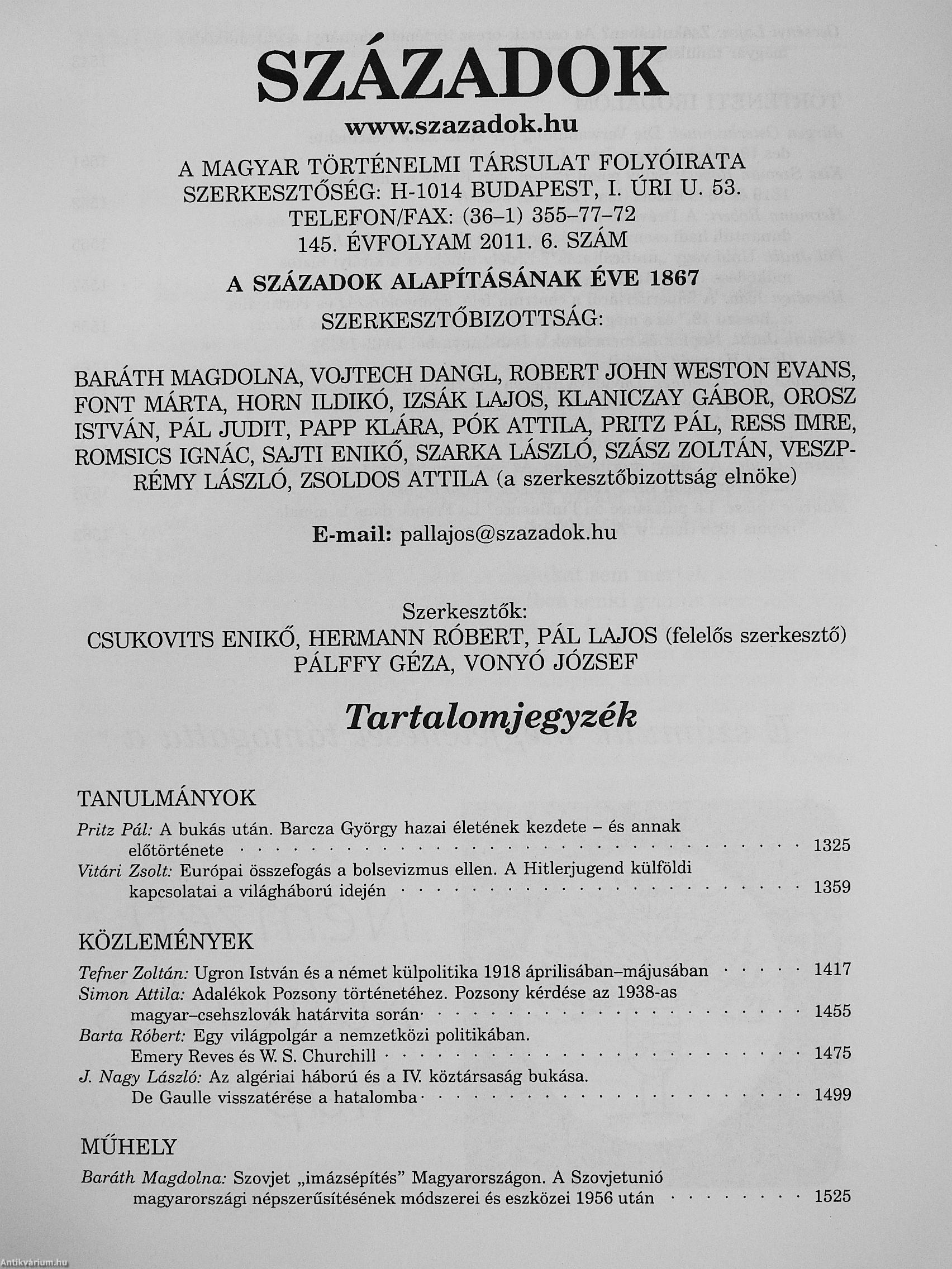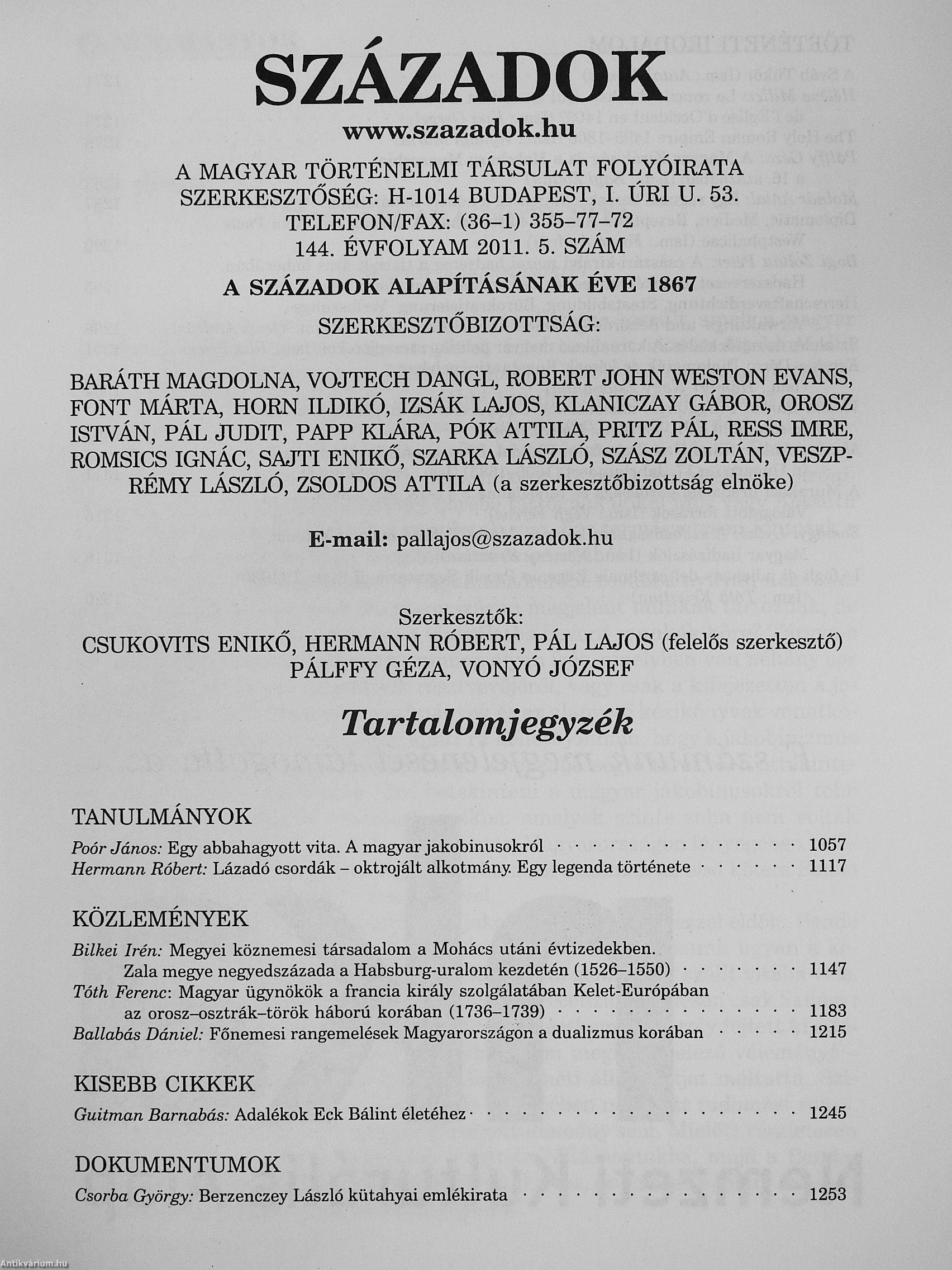 Századok 2011/1-6. Századok 2011/1-6. Századok 2011/1-6. Századok 2011/1-6.