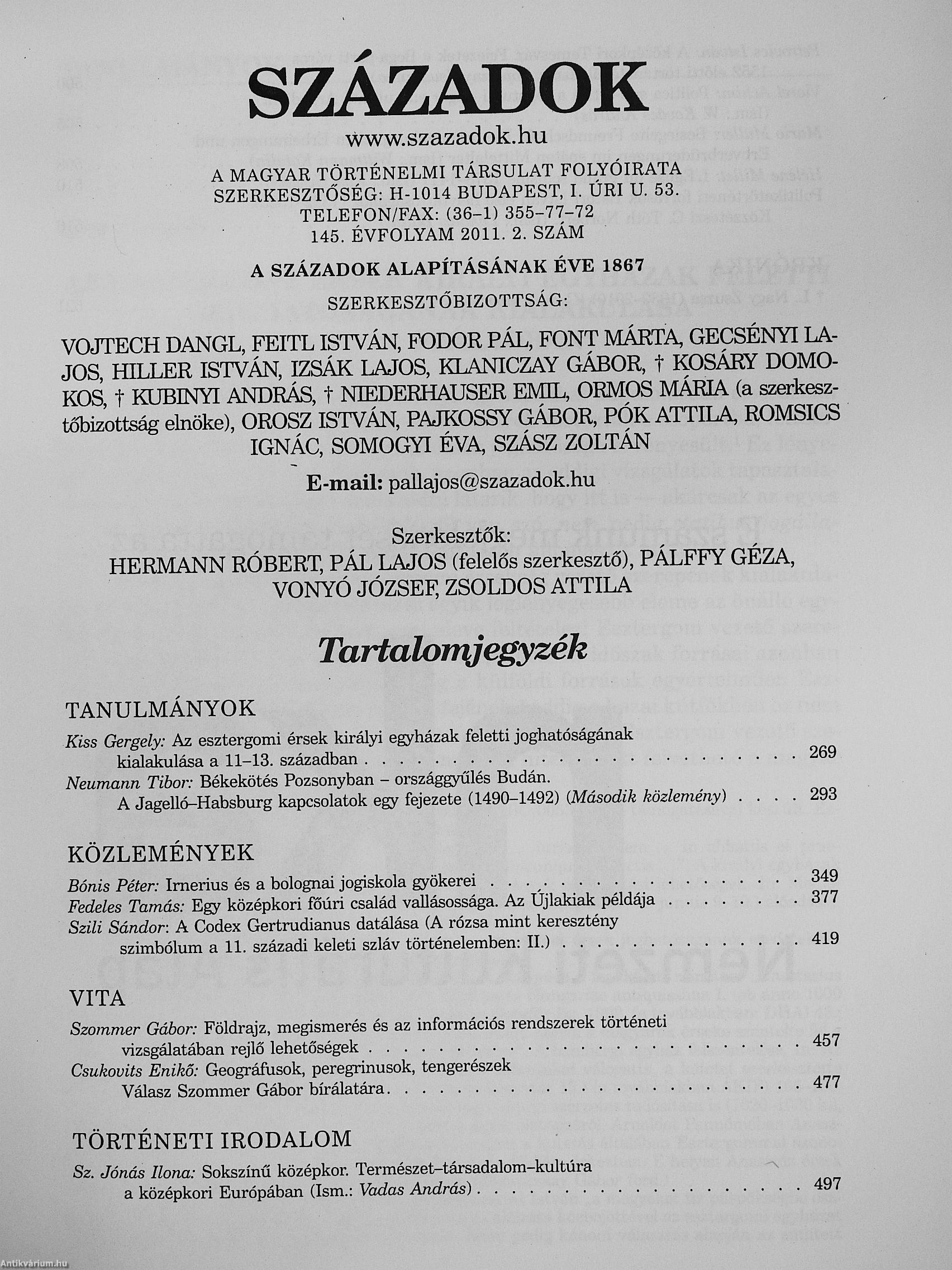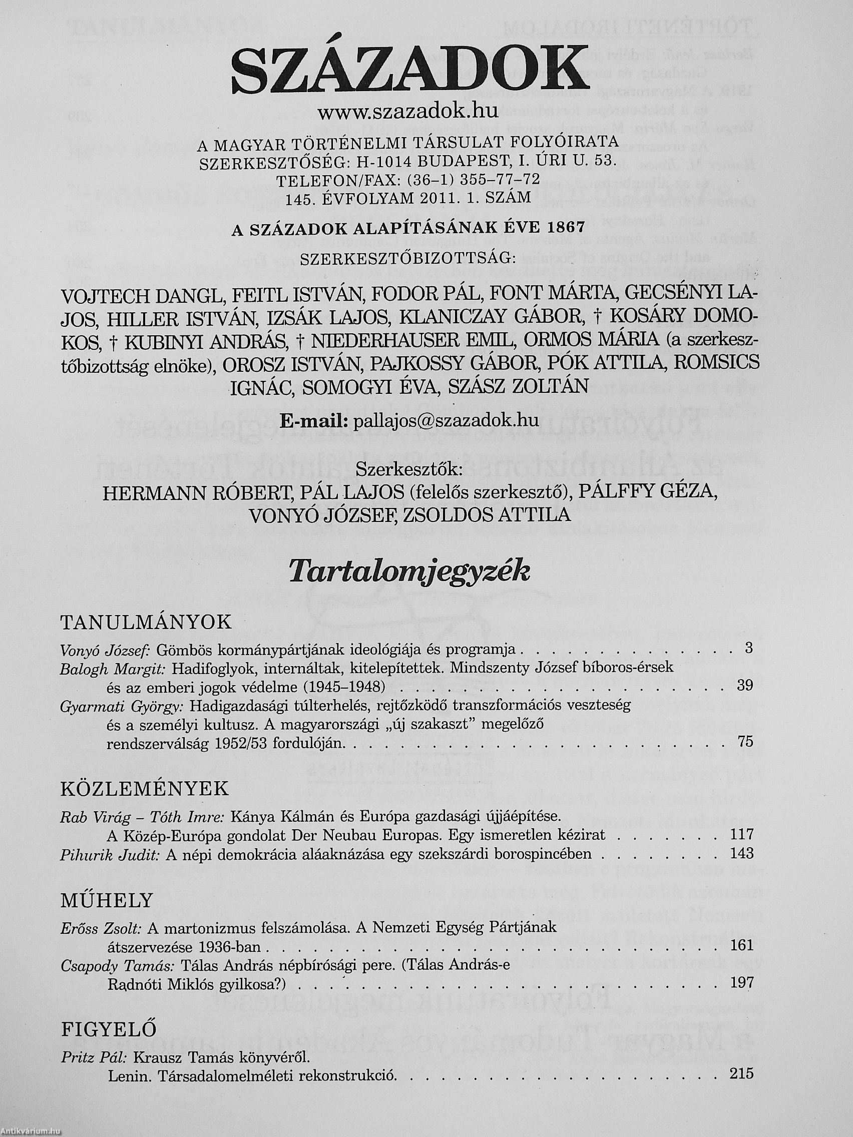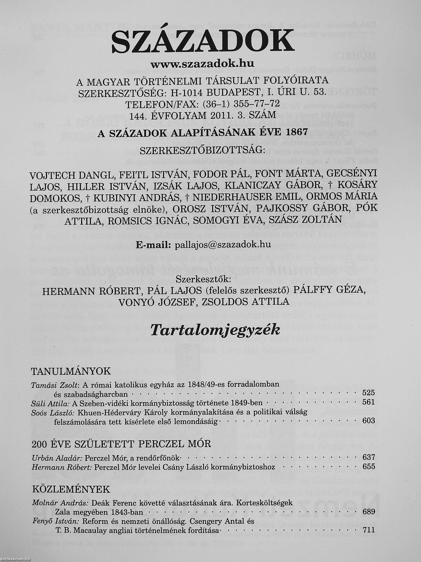 Századok 2011/1-6. Századok 2011/1-6. Századok 2011/1-6. Századok 2011/1-6.
