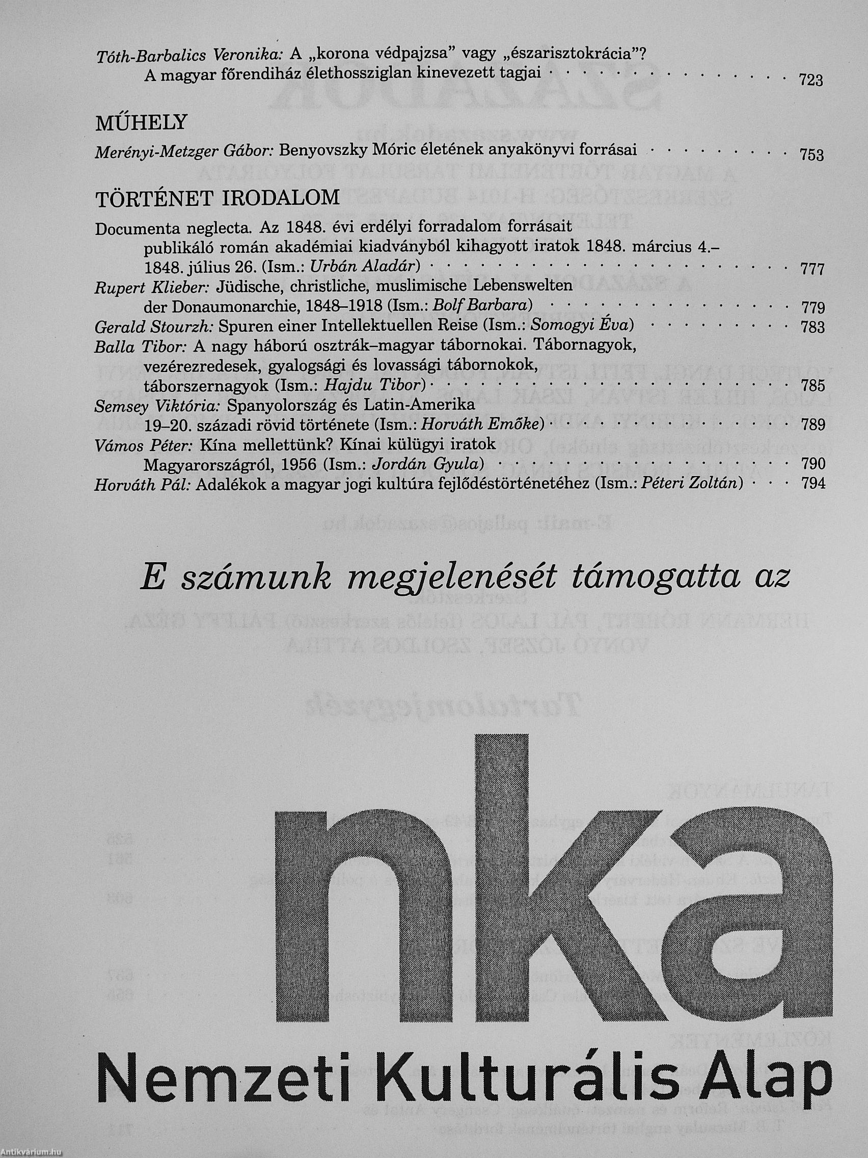 A magyar történelmi társulat folyóirata - 145. évfolyam, 1-6. szám