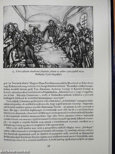Ebben a könyvben azonban - javarészt még nem publikált képanyag, eredeti versfordítások, stb. környezetében - nem a legendák Széchenyijével találkozhat az olvasó. Egy minden zsenialitása, impozáns alkotásai stb. ellenére ezernyi kicsinyességgel, hibával teli, a maga egyszervolt sorsával betegen megküszködő, a mindennapok erkölcsi csatáiból hol győztesen, hol vesztesen kikerülő férfi pályáját rajzolja elibénk az elfogulatlan szakkutatás eredményeinek summázata. A lángész kinyilatkoztatásainak réveteg hallgatása helyett inkább a politikai és lélektani rejtélyek bogozása kínál magas fokú szellemi izgalmat.