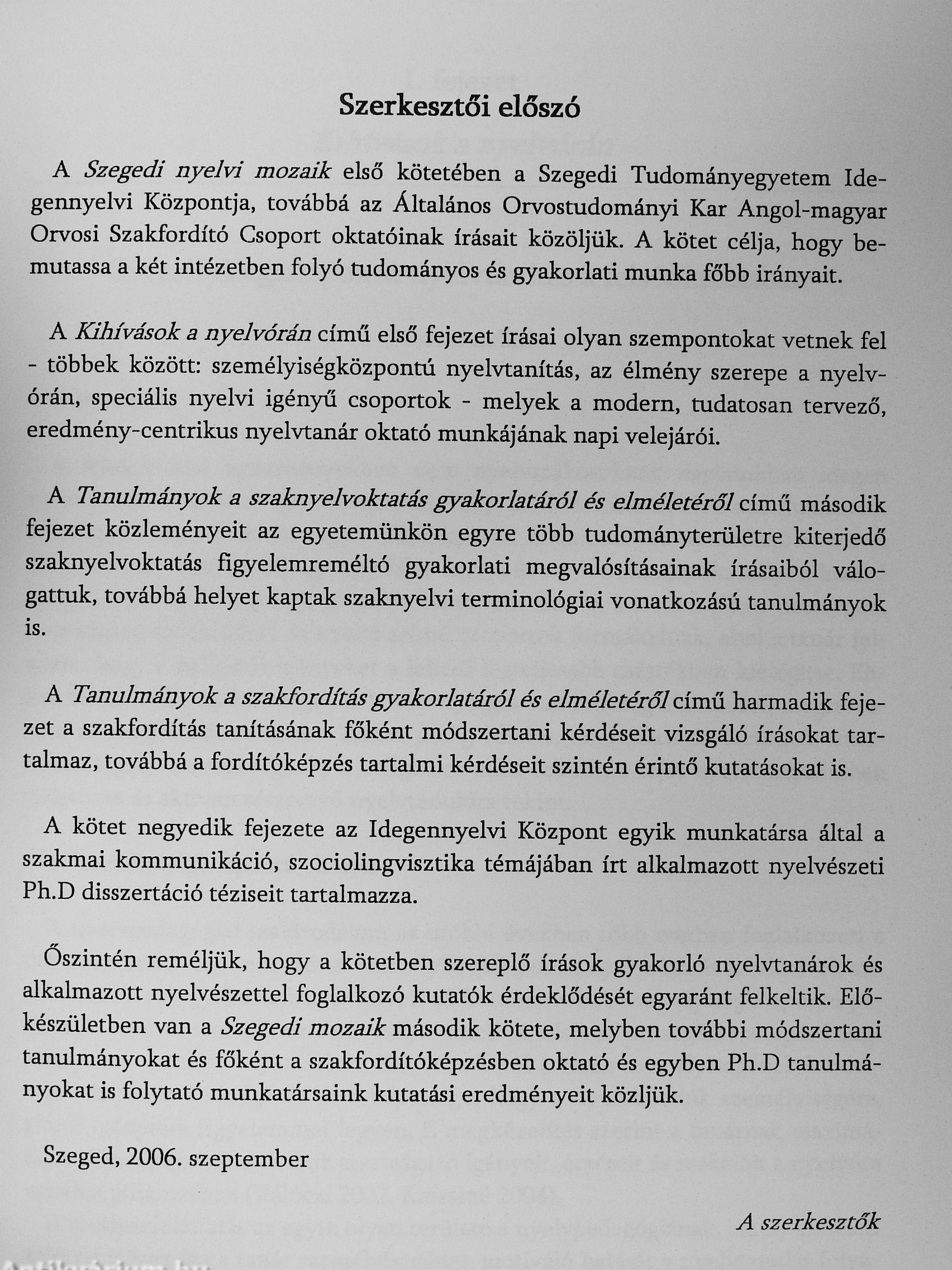 | Kiadó: | Szegedi Tudományegyetem Idegen Nyelvi Központ |
