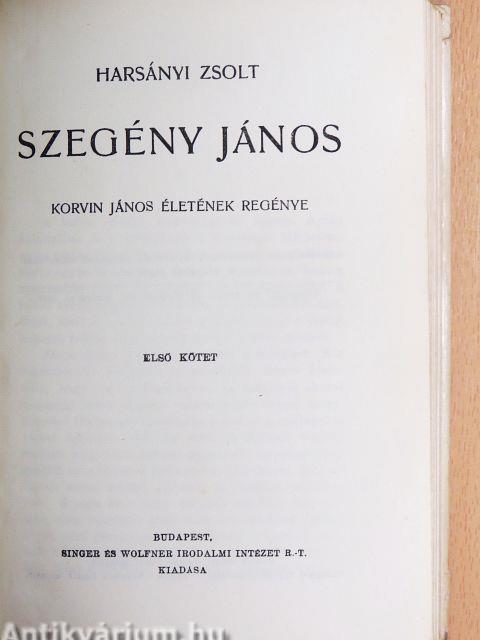 A magyar történelemnek tragikus alakja Mátyás király fia, Harsányi Zsolt új regényének hőse, "Szegény János". A magyarság nagy tragédiája, hogy Mátyás király fia testben, lélekben gyenge, nem tudta megvédeni Mátyás örökségét, nem tudott igazi Hunyadi lenni. De nemcsak történelmi hivatását nem tölthette be: mint ember sem lehetett nagyon boldog. A nemzet elindult a Mohácshoz vezető úton. Korvin János pedig, a nagy név sápadt, sánta öröksége, hamarosan végigjárta rövid, olyan fényesen induló és olyan szomorúan végződő életútját. A hanyatló magyar renaissance színes, tragikus története Korvin János életének regénye.