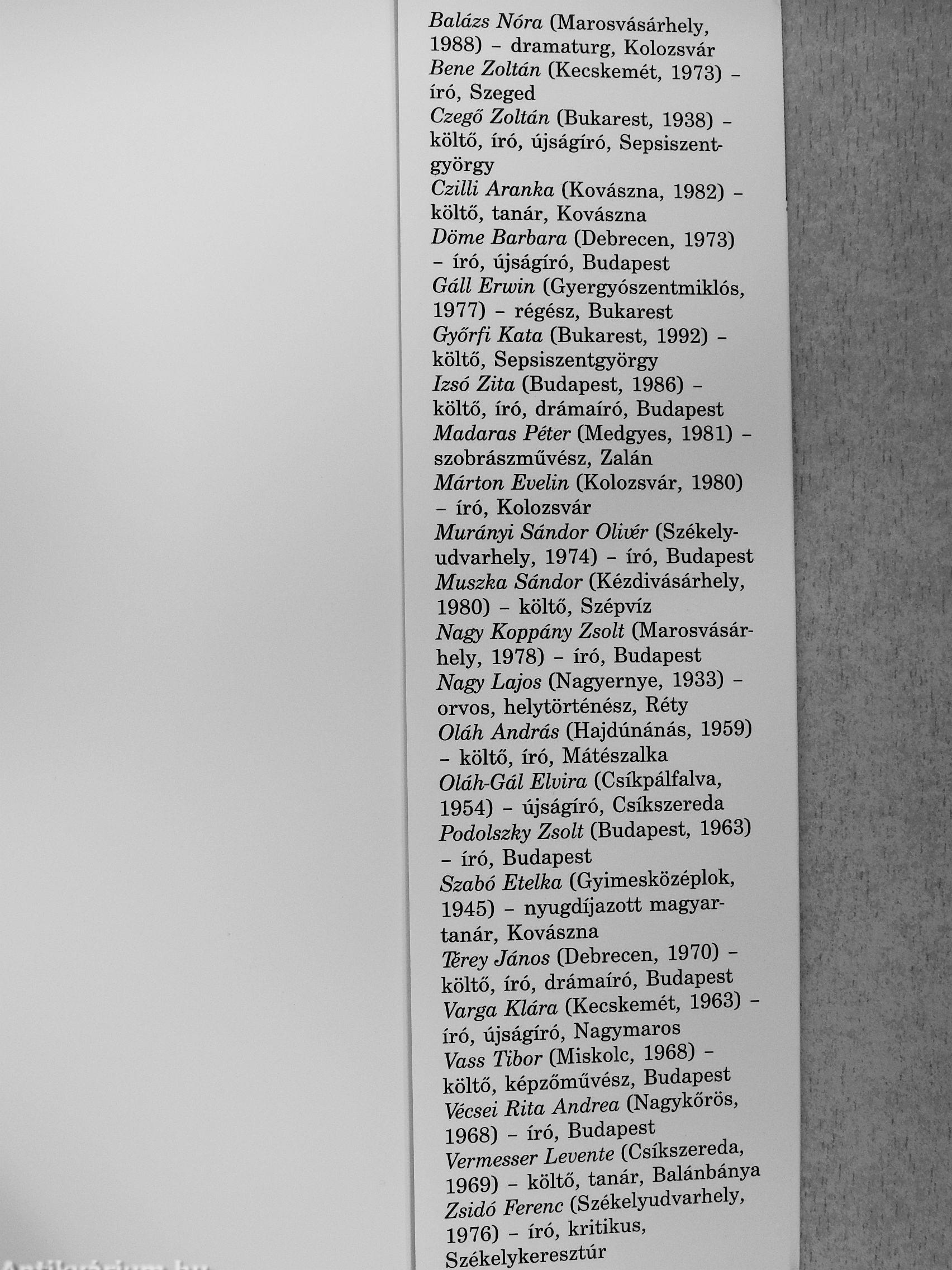 1969) - költő, tanár, Balánbánya Zsidó Ferenc (Székelyudvarhely, 1976) - író, kritikus, Székelykeresztúr