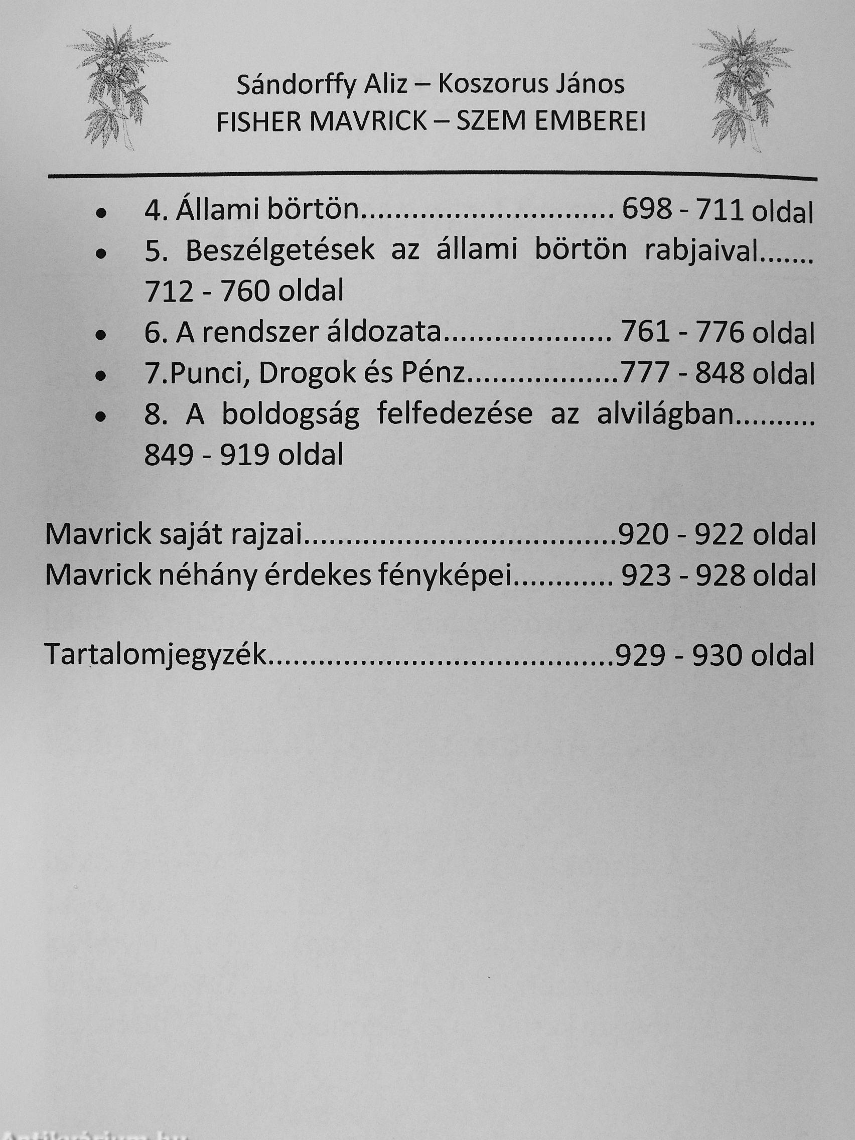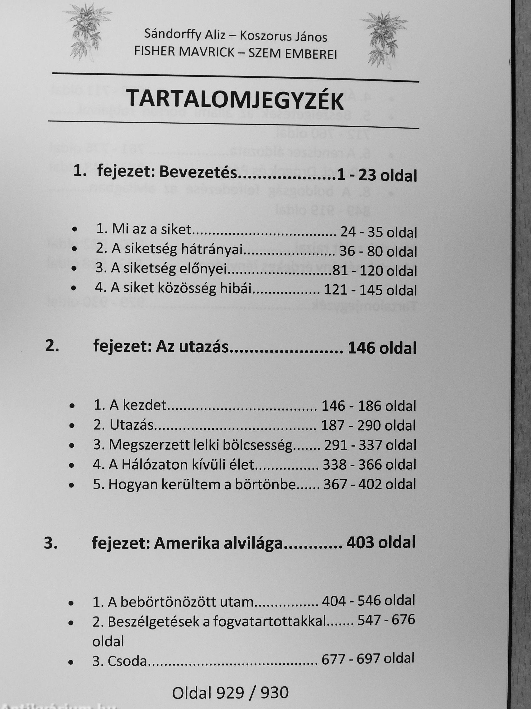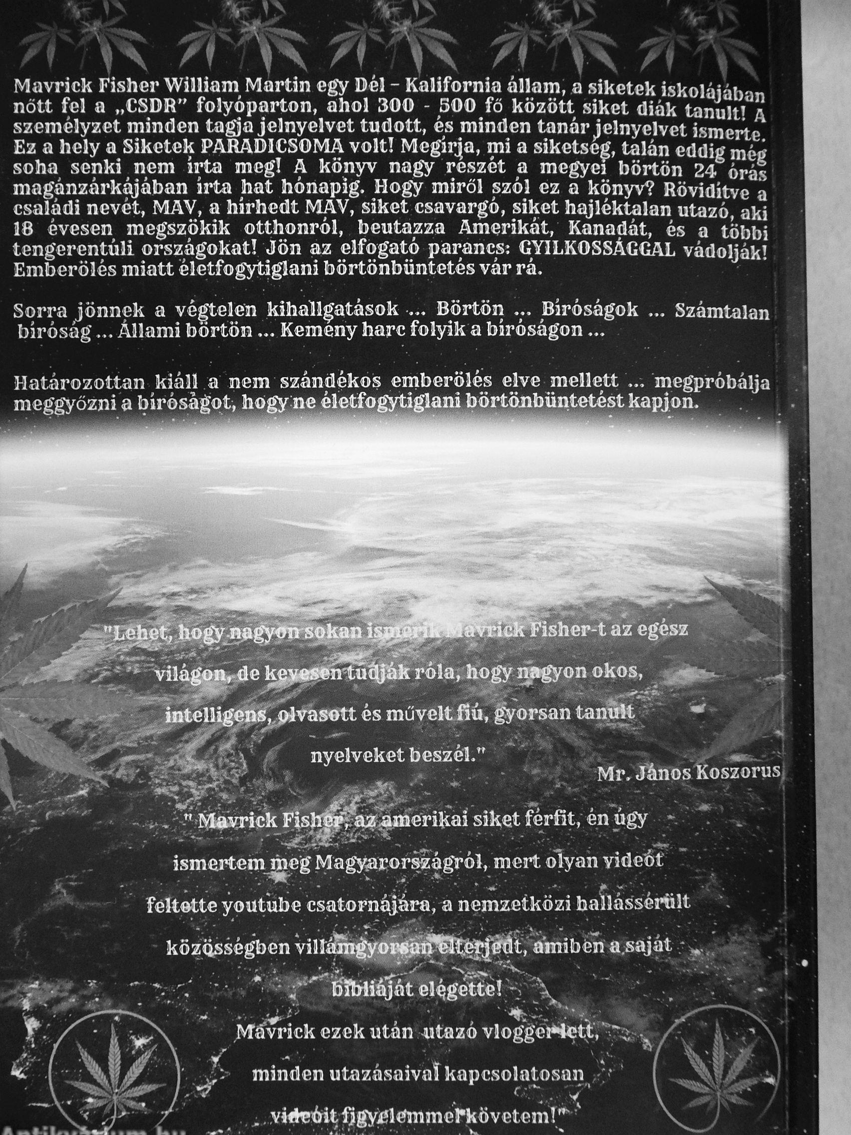 Mavrick Fisher William Martin egy Dél - Kalifornia állam, a siketek iskoláiáha nőtt fel a „CSDR" folyóparton, ahol 300 500 fő között siket diák tanult' A személyzet minden tagja jelnyelvet tudott, és minden tanár jelnyelvet ismertP Ez a hely a Siketek PARADICSOMA volt! Megír4a, mi a sikets%, talán eddig métf soha senki nem ii^ meg! A könyv nagy részét a megyei börtön 24 órás magánzárk^ában írta hat hónapig. Hogy miről szól ez a könyv? Rövidítve a családi nevét, MAV, a hírhedt MAV, siket csavargó, siket hajléktalan utazó, aki 18 évesen megszökik otthonról, beutazza Amerikát, Kanadát, és a többi tengerentúli országokat! Jön az elfogató parancs: GYILKOSSÁGGAL vádolják' Emberölés miatt életfogytiglani börtönbüntetés vár rá.