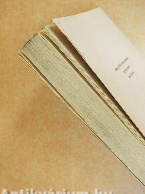A borító, a lapélek és néhány lap kissé foltos. A borító töredezett és a gerinc és a címlap sérült. A címlapon bejegyzés látható és a kötés megtört.