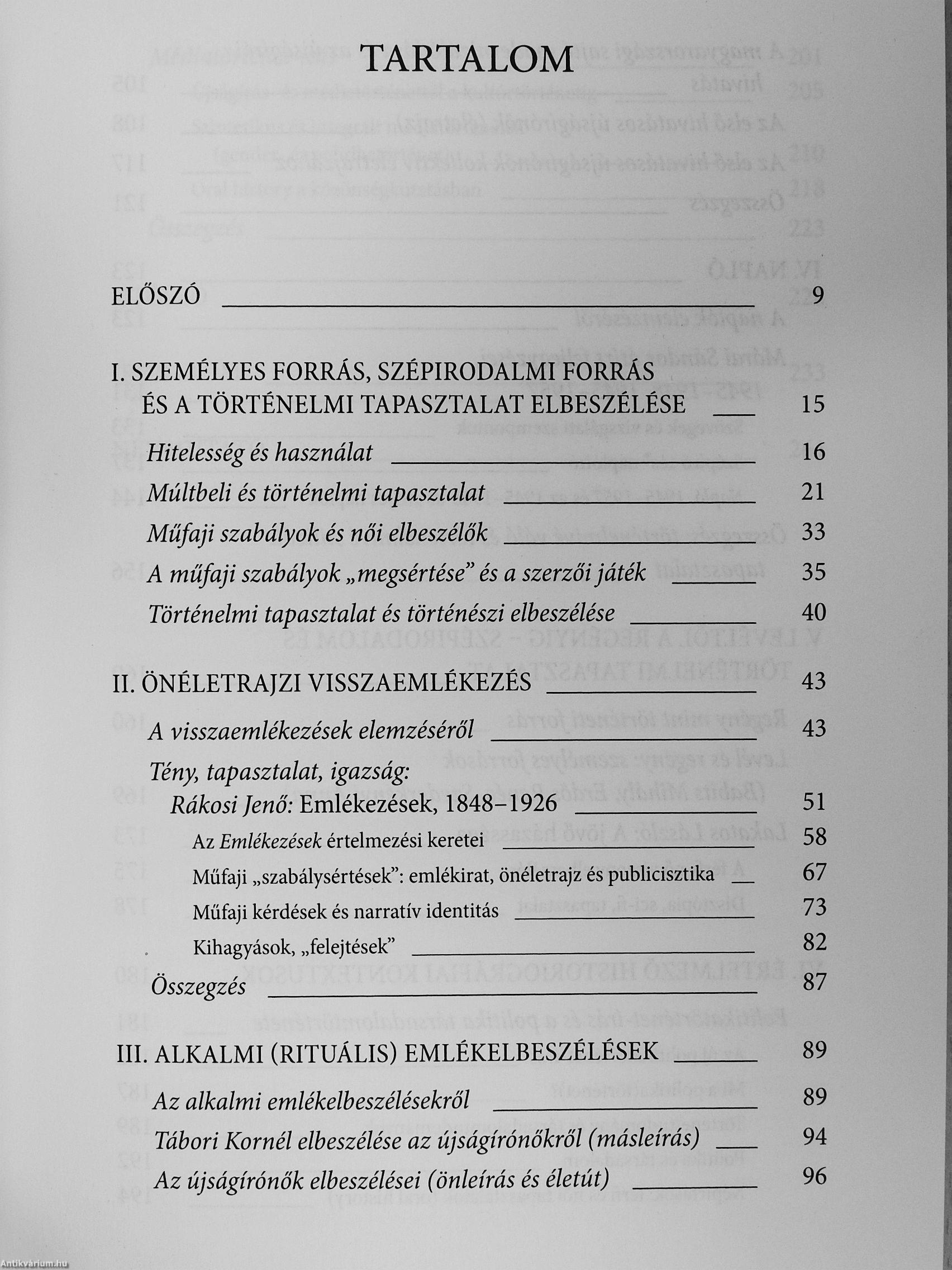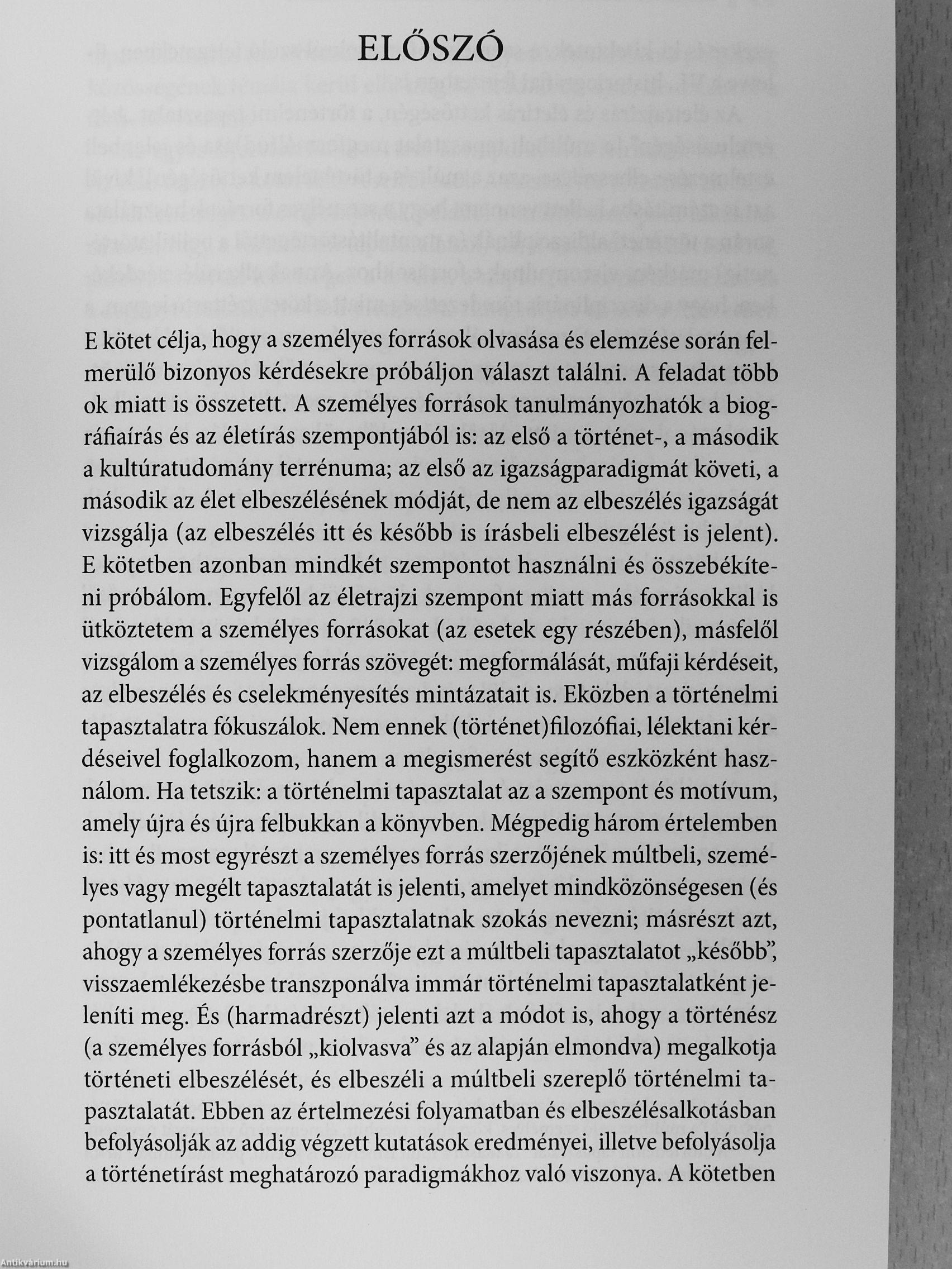 Hogyan olvassunk naplót, önéletrajzot és más típusú személyes történeti forrást? Ez a fő kérdése ennek a kötetnek, amelynek kettős célja van. Egyrészt konkrét szövegek alapján általános szempontokat, útmutatót kínál a személyes történeti források értelmezéséhez. Másrészt néhány esettanulmány során igen részletesen bemutatja e szempontok használhatóságát, miközben adott szöveg filológiai vizsgálatát is elvégzi. Ami a vizsgálati kérdéseket illeti, a következőkre kell gondolni: miként lehet a szerző saját korában keletkezett regényeit személyes forrásként értelmezni? Miként deríthető ki a szerző szándéka és miért hasznos követni: hogyan változott a szerzői elbeszélés például különféle naplóverziók során, levelek és regények, emlékbeszédek és önéletrajz között? Mennyiben formálták ezeket az elbeszéléseket a műfaji szabályok és a közönség normái? Találhatók-e nemspeciíikus különbségek a személyes forrásokkal való foglalkozás során? Milyen módon működik a történészek (az olvasók) által használt „értelmezési keret" a naplók, önéletrajzok olvasásakor? Mennyiben határozzák meg a személyes források használatát a történetírás egyes részterületein zajló változások?