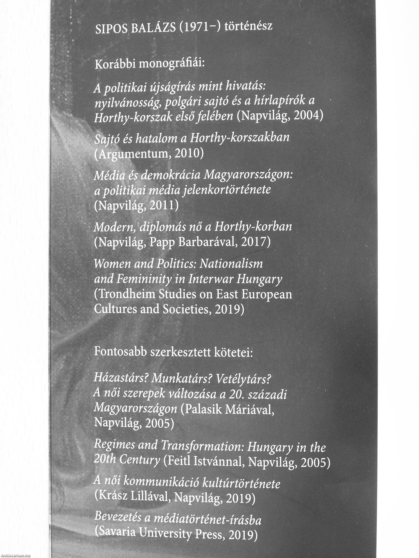 A politikai újságírás mint hivatás: nyilvánosság, polgári sajtó és a hírlapírók a Horthy-korszak első felében (Napvilág, 2004)