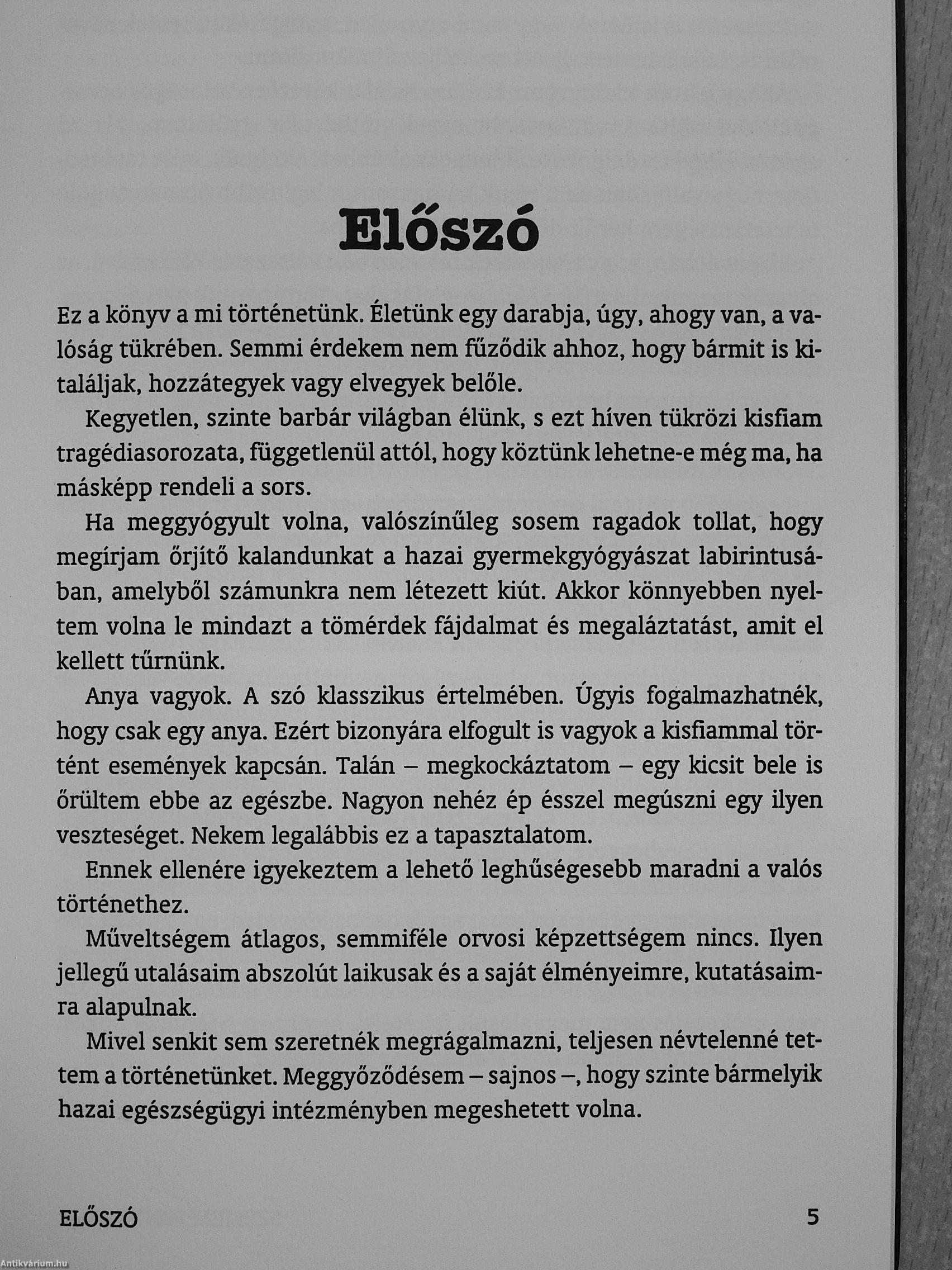 „Anya vagyok. A szó klasszikus értelmében. Ugy Is fogalmazhatnék, hogy csak egy anya. Ezért bizonyára elfogult is vagyok a kisfiammal történt események kapcsán. Talán - megkockáztatom - egy kicsit bele is őrültejn ebbe az egészbe. Nagyon nehéz ép ésszel megúszni egy ilyen veszteséget. Nekem legalábbis ez a tapasztalatom.