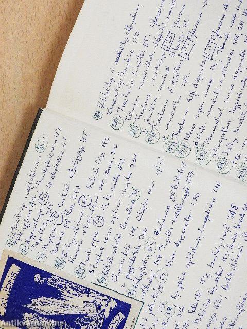 Több lapon aláhúzás, bejegyzés található. A borító gerince sérült. A kötés megtört. Az előzéklapon tulajdonosi bejegyzés található.