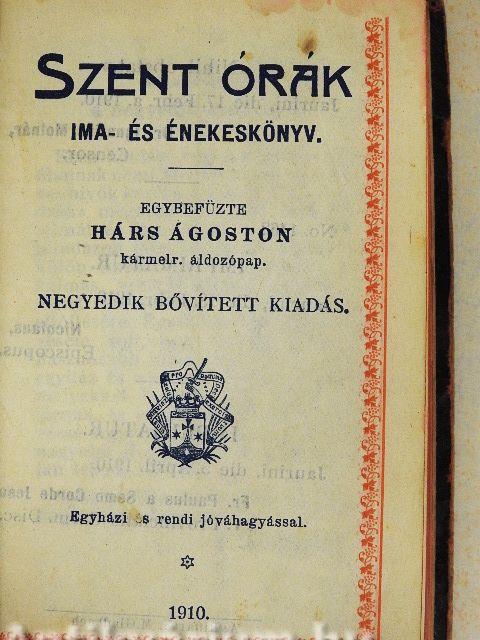 Ezen kiadást engedve az általános óhajnak némi bővítéssel adom a kedves hivők kezébe. A könyv cime «Szent órák» megmondja annak belső tartalmát és beosztását, a mennyiben mindazon társulati tagok is, kiknek külön imaórákat kell tartani ok, alkalmas vezérül használhatják az előirt áhítat-órák üdvös és szent eltöltéséről Egyébként pedig fötörekvésem volt, hogy minél szebb és hasznosabb imákat fűzzek egybe az egyház és a szentek könyörgéseiből, melyekkel jórészt még bucsuk is járnak, és ezáltal mindenkinek kedvessé tegyem e kis könyvet az Isten nagyobb dicsőségére és a halhatatlan lelkek üdvére.